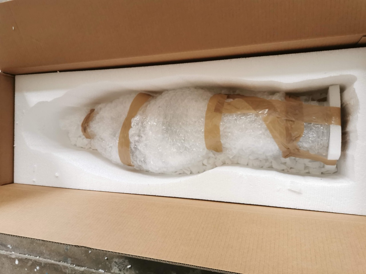 Gli oggetti più piccoli vengono imballati singolarmente in carta velina, pluriball e immersi in “arachidi di polistirolo”.