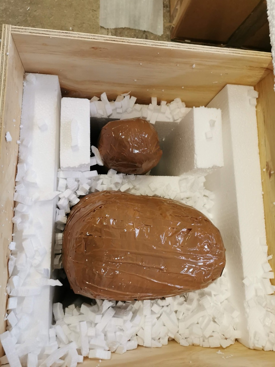 Gli oggetti più voluminosi seguono lo stesso procedimento, ma vengono imballati e protetti in casse di legno con pareti interne di polistirolo.