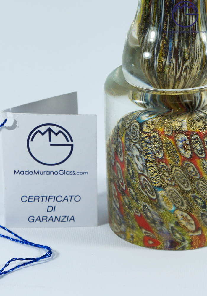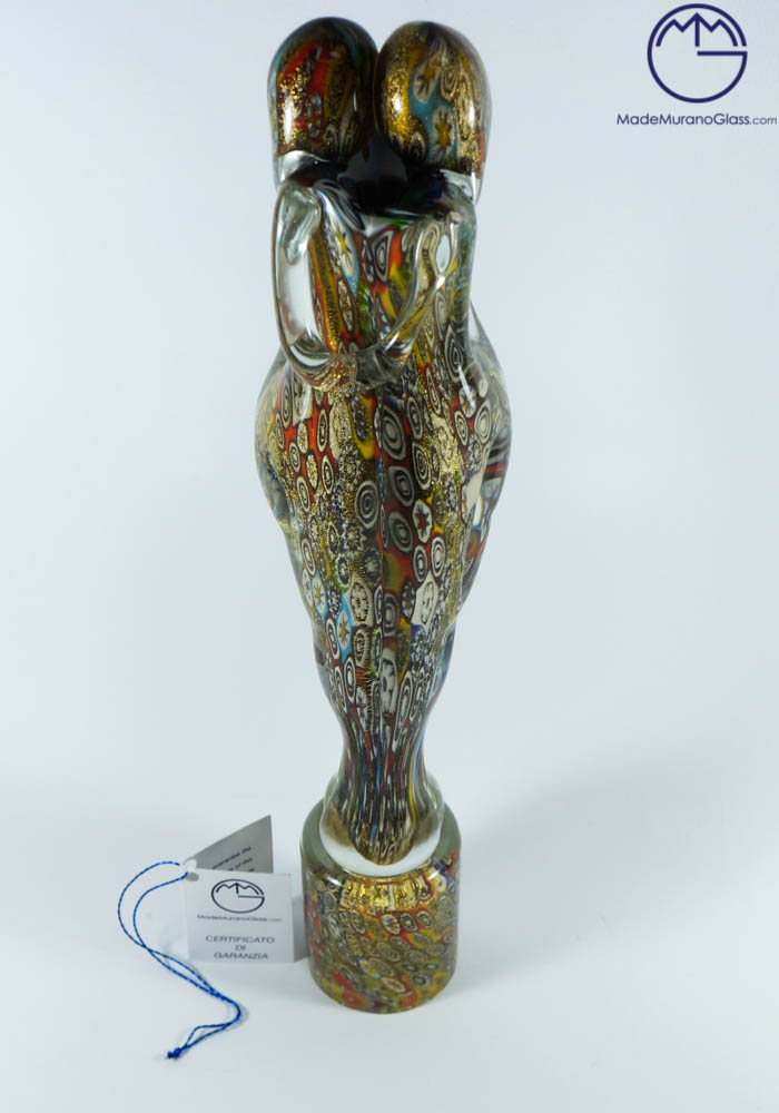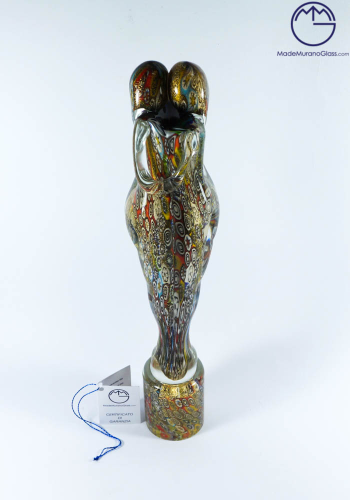 Amanti in Murano vetro artistico interamente lavorati a mano con murrina millefiori e ricoperto di foglia oro 24kt . I Maestri vetrai di Murano modellano a caldo questa fantastica statua, senza uso di stampi ne forme ma solamente a mano libera danno luce a quest’ opera magnifica. Per completare l’unicità il Maestro (D’este) incide la propria firma a freddo.