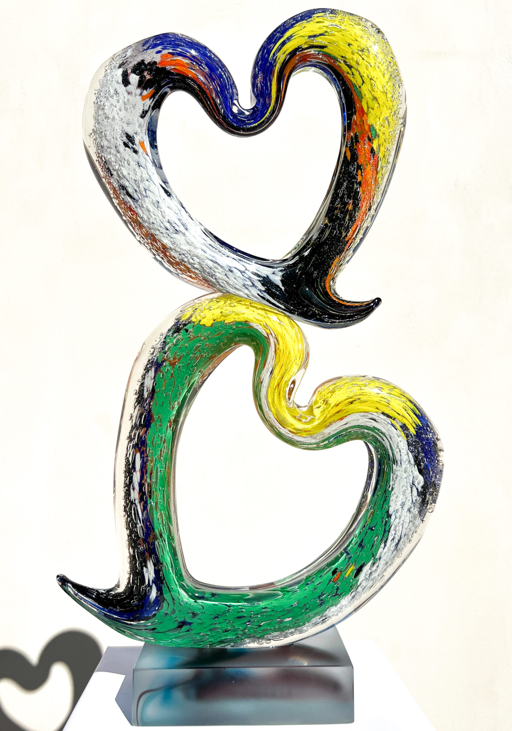 Amor – Scultura in Vetro di Murano Multicolore con Due Cuori