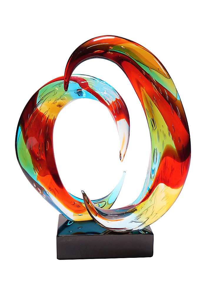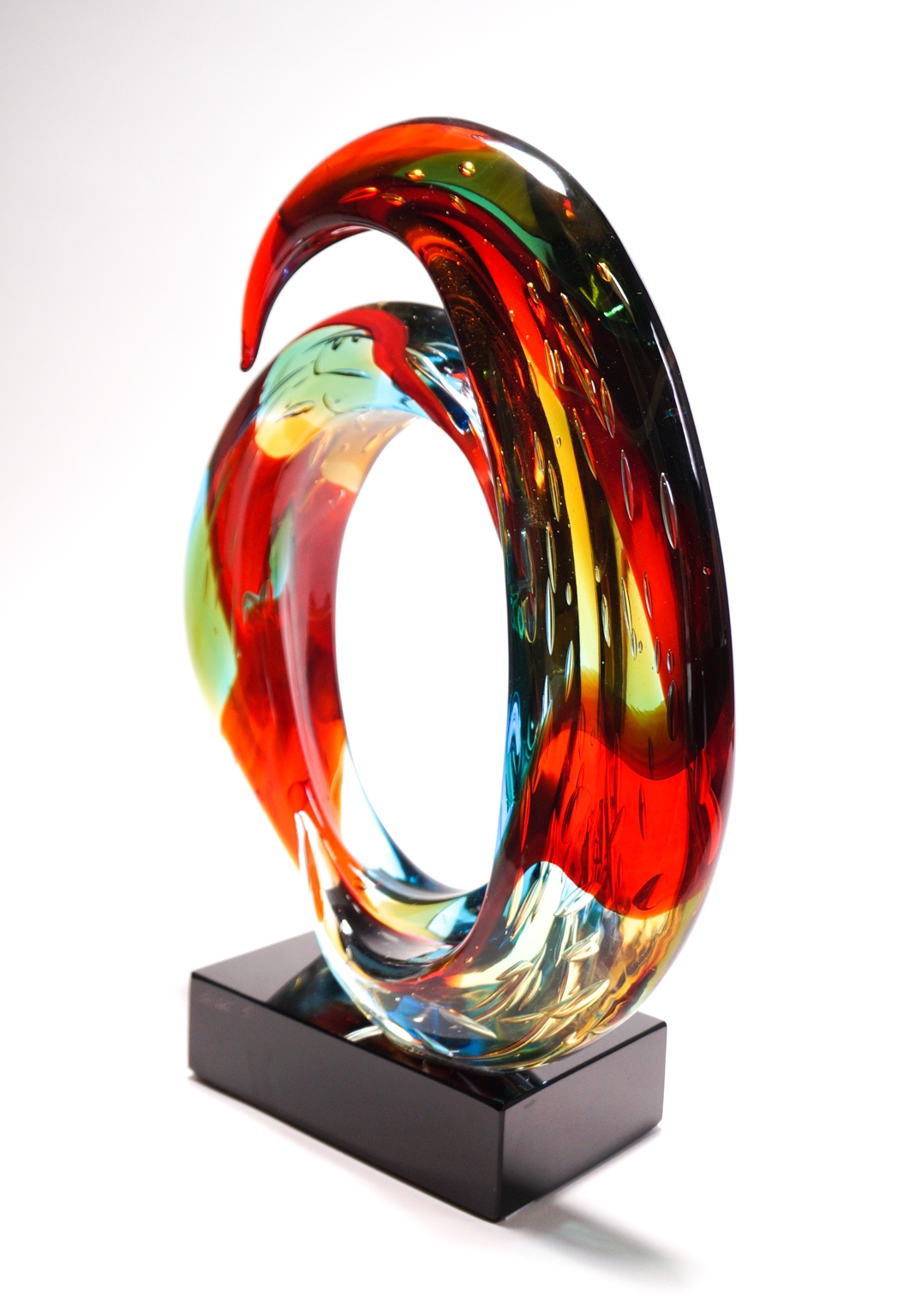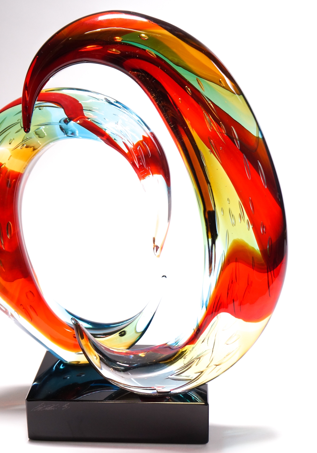 Scultura in Vetro di Murano realizzata interamente a mano in multicolore con base nera.