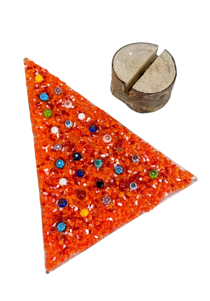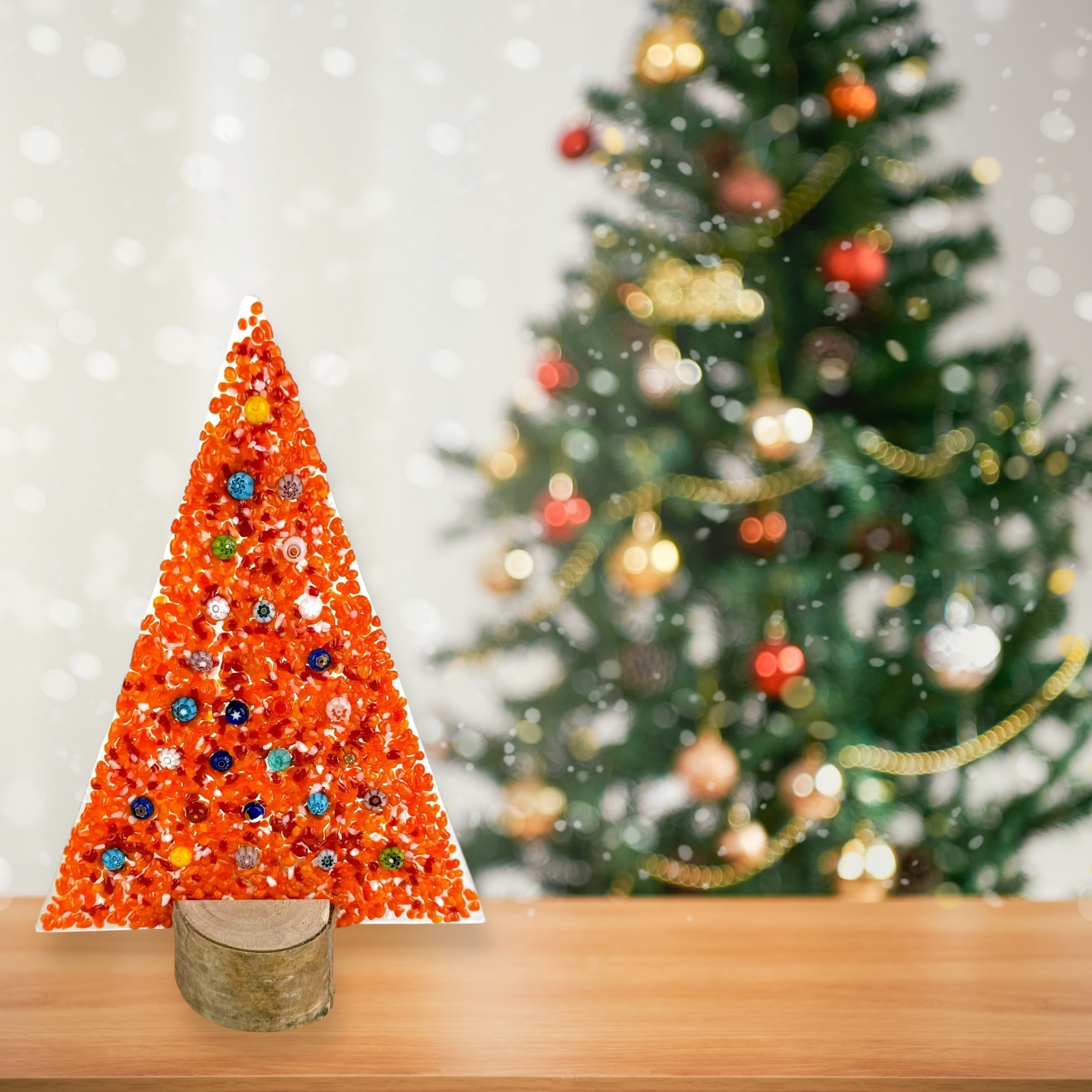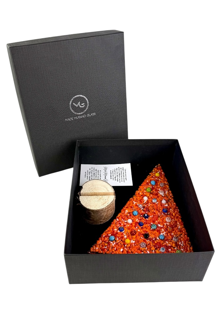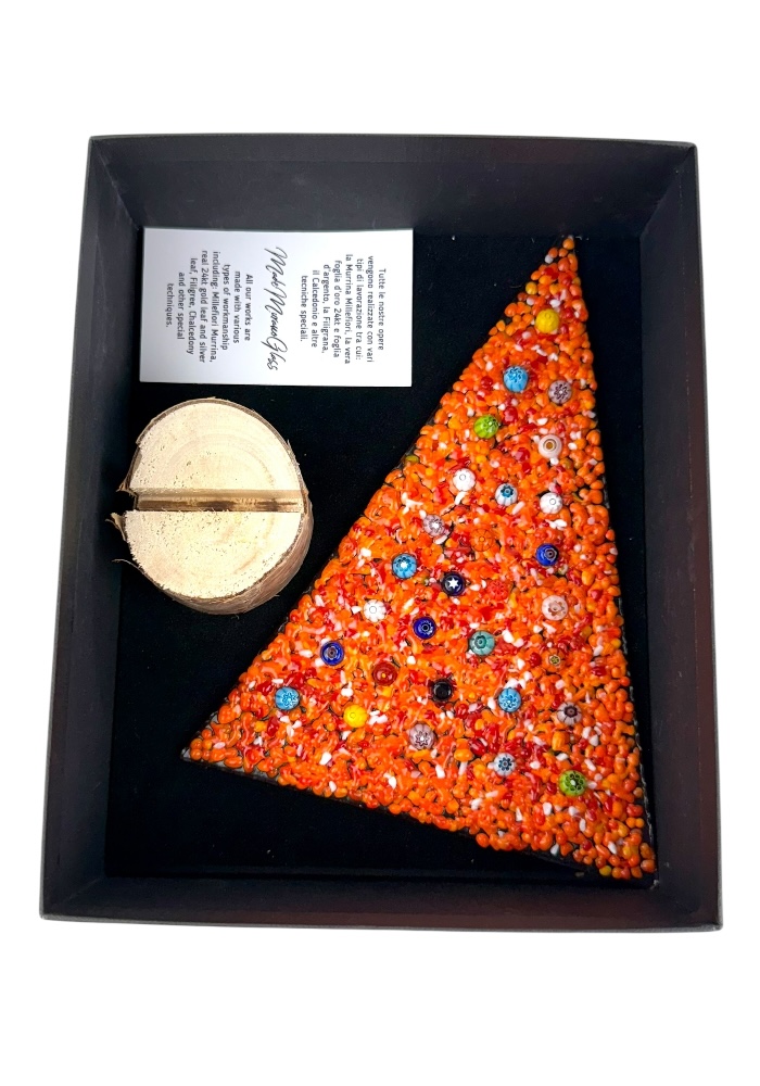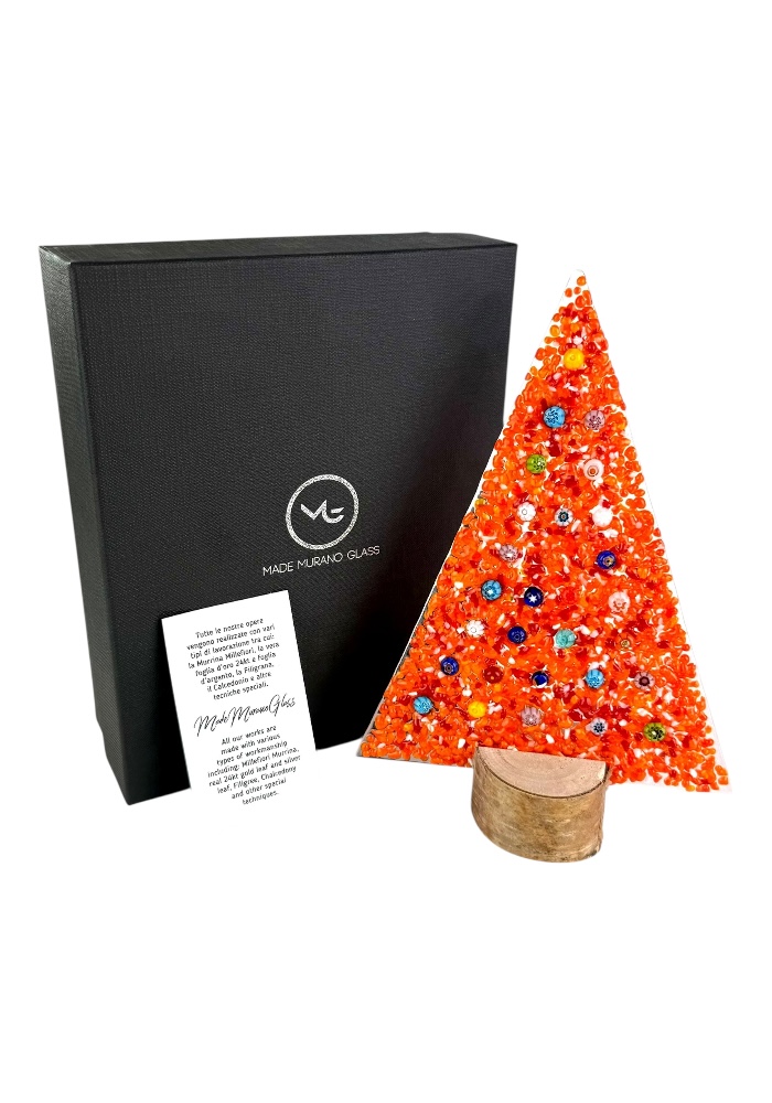 Albero di natale in vetro di Murano con base in vero legno, fornito con scatola personalizzata.