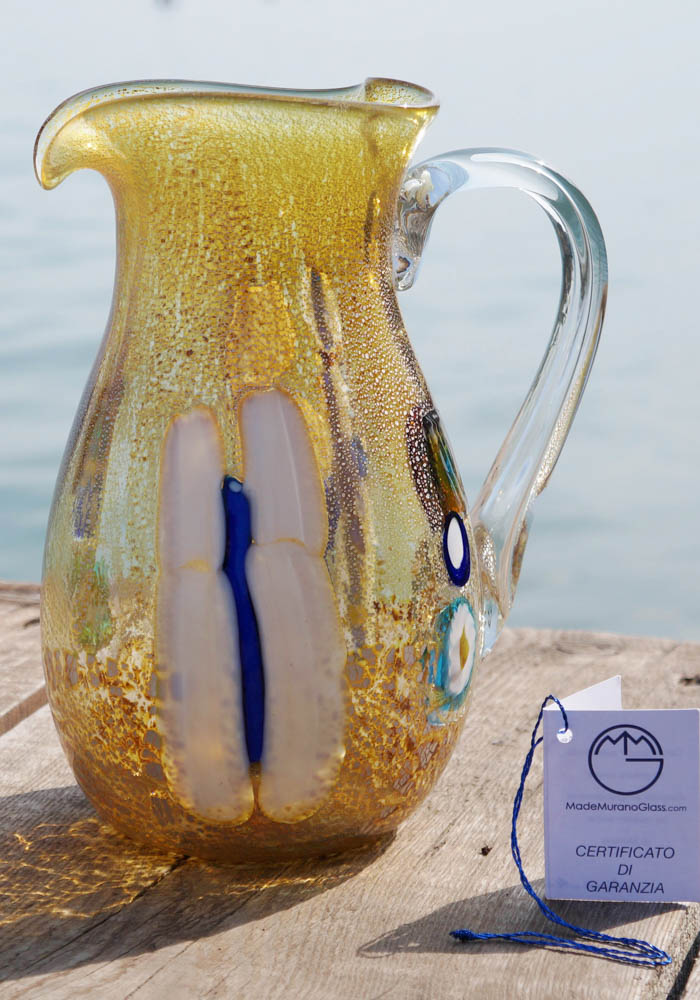 Meravigliosa caraffa per acqua o vino realizzata con autentico vetro di Murano e con vera foglia Argento.