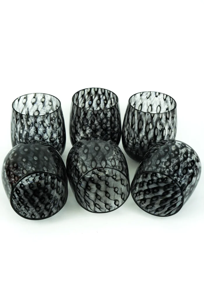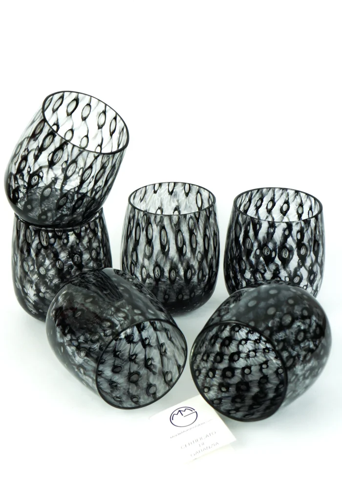 Set di 6 bicchieri in vetro soffiato di Murano interamente fatti a mano colore nero.