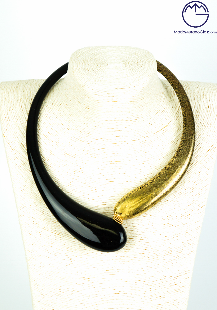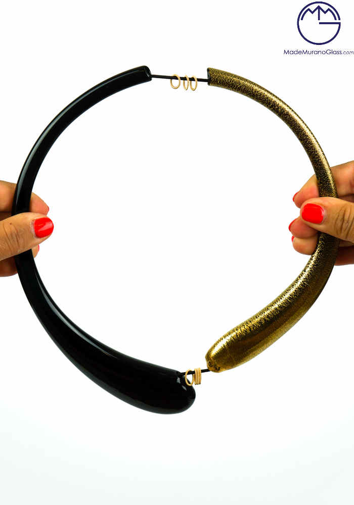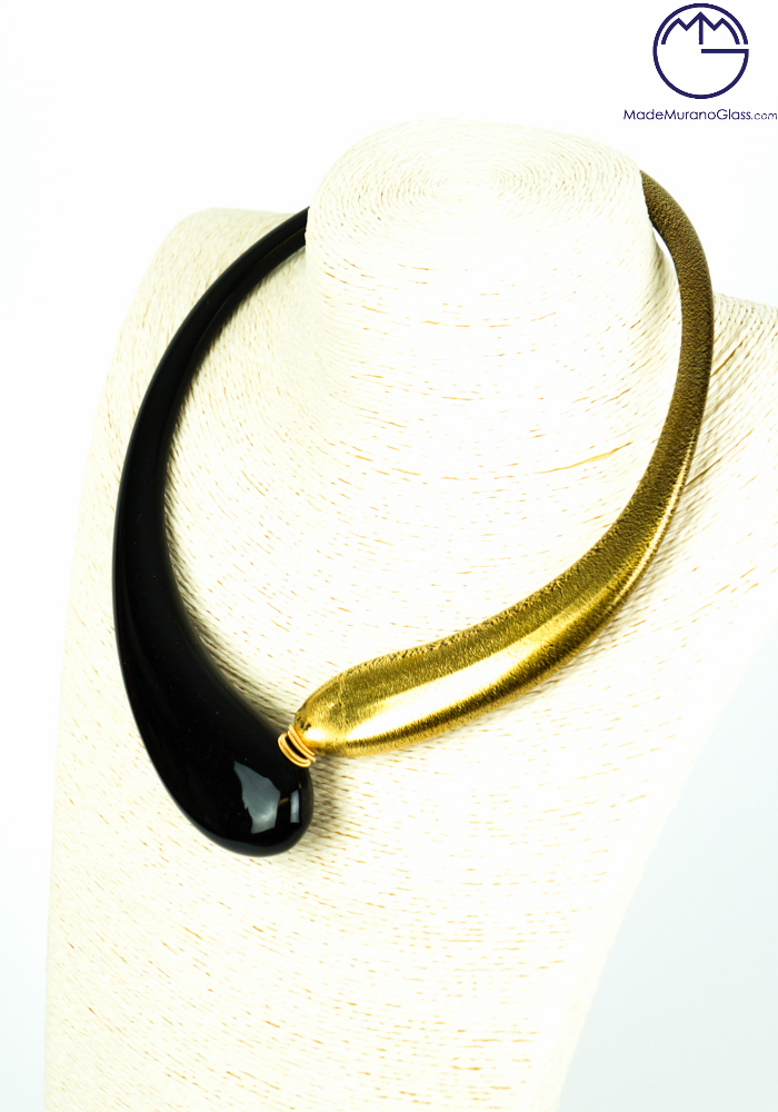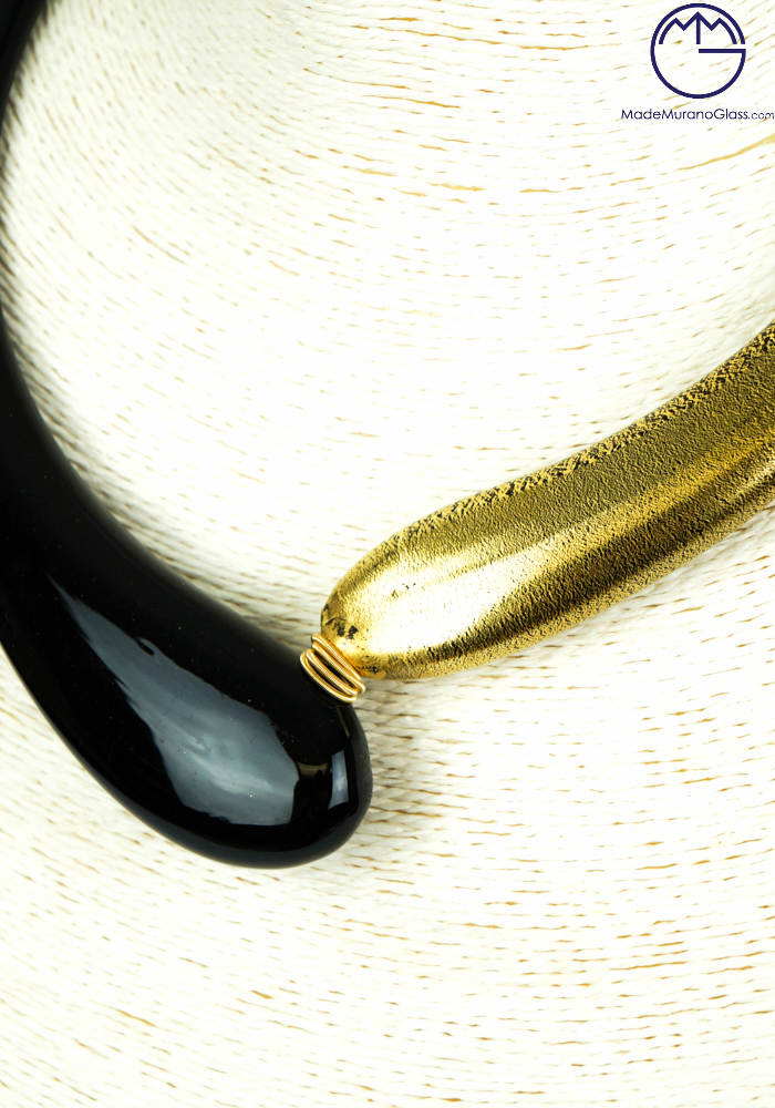 Bovary – Collana In Vetro Di Murano Nero Con Foglia Oro 24kt