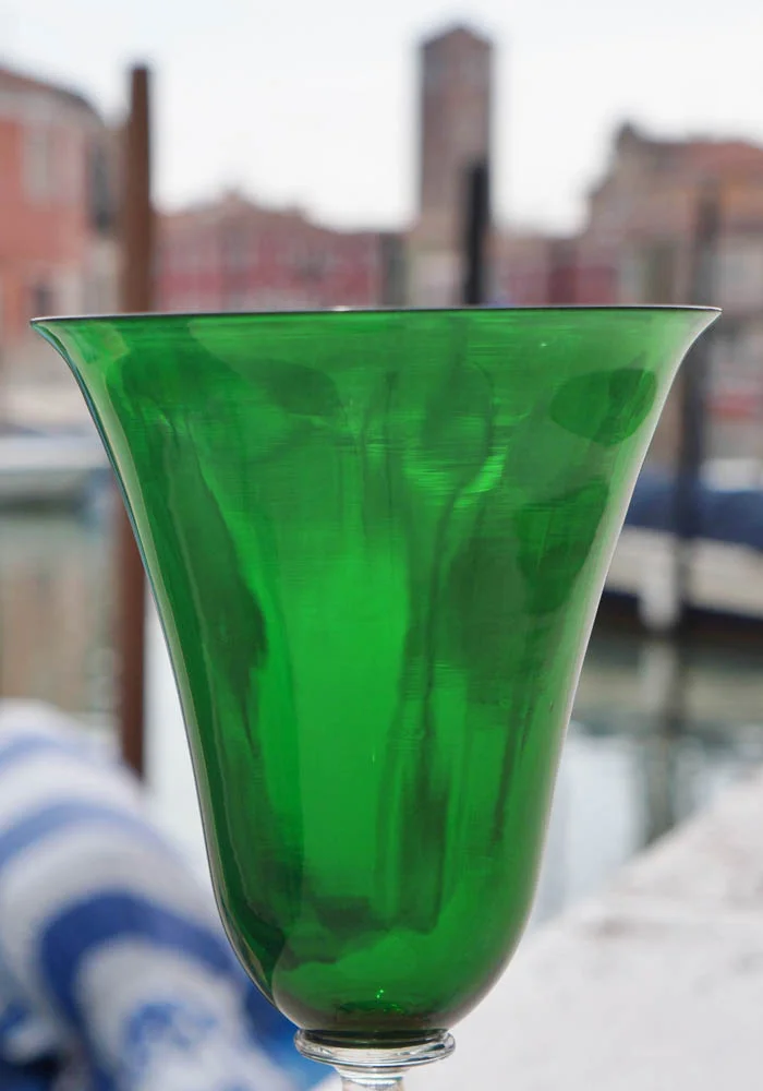Set 6 Calici Murano Verde E Foglia Oro