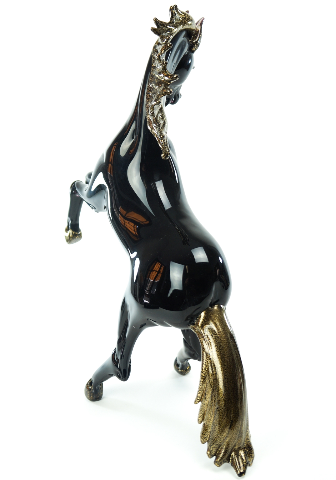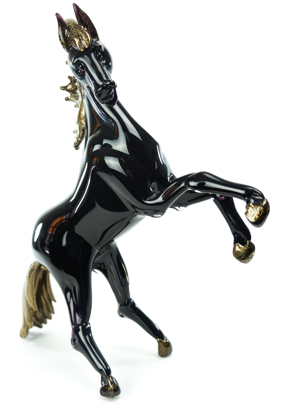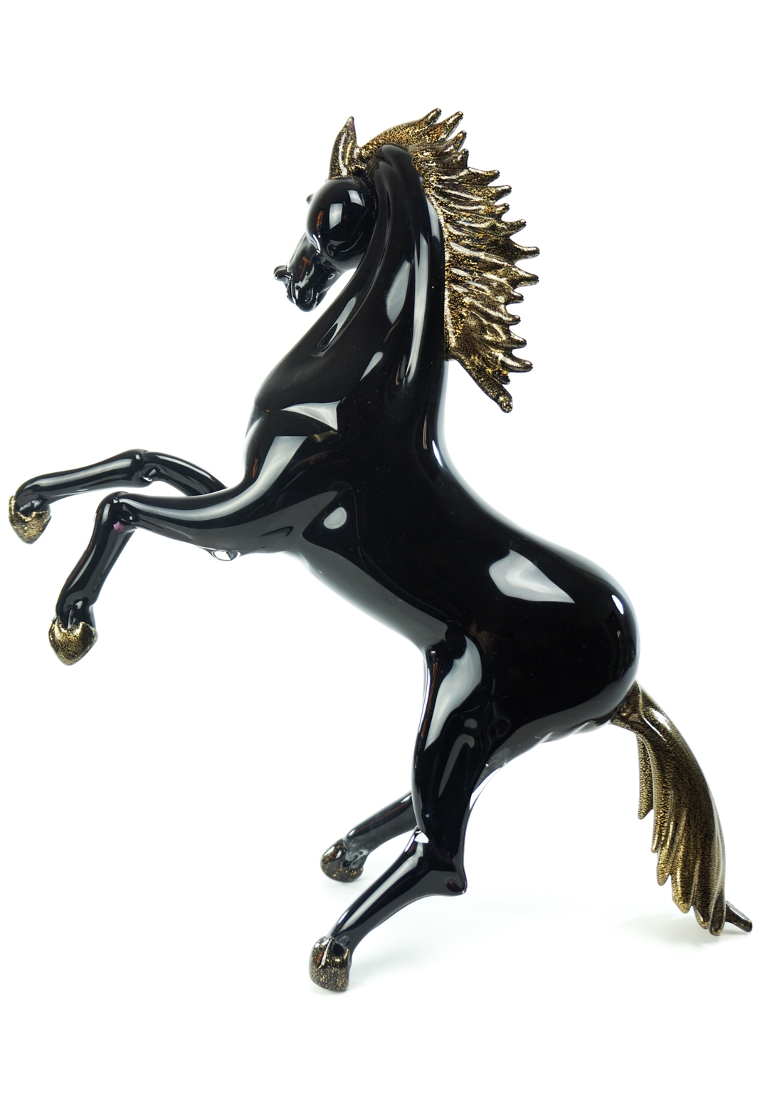 Cavallo In Vetro Di Murano Nero Con Dettagli In Oro 24kt
