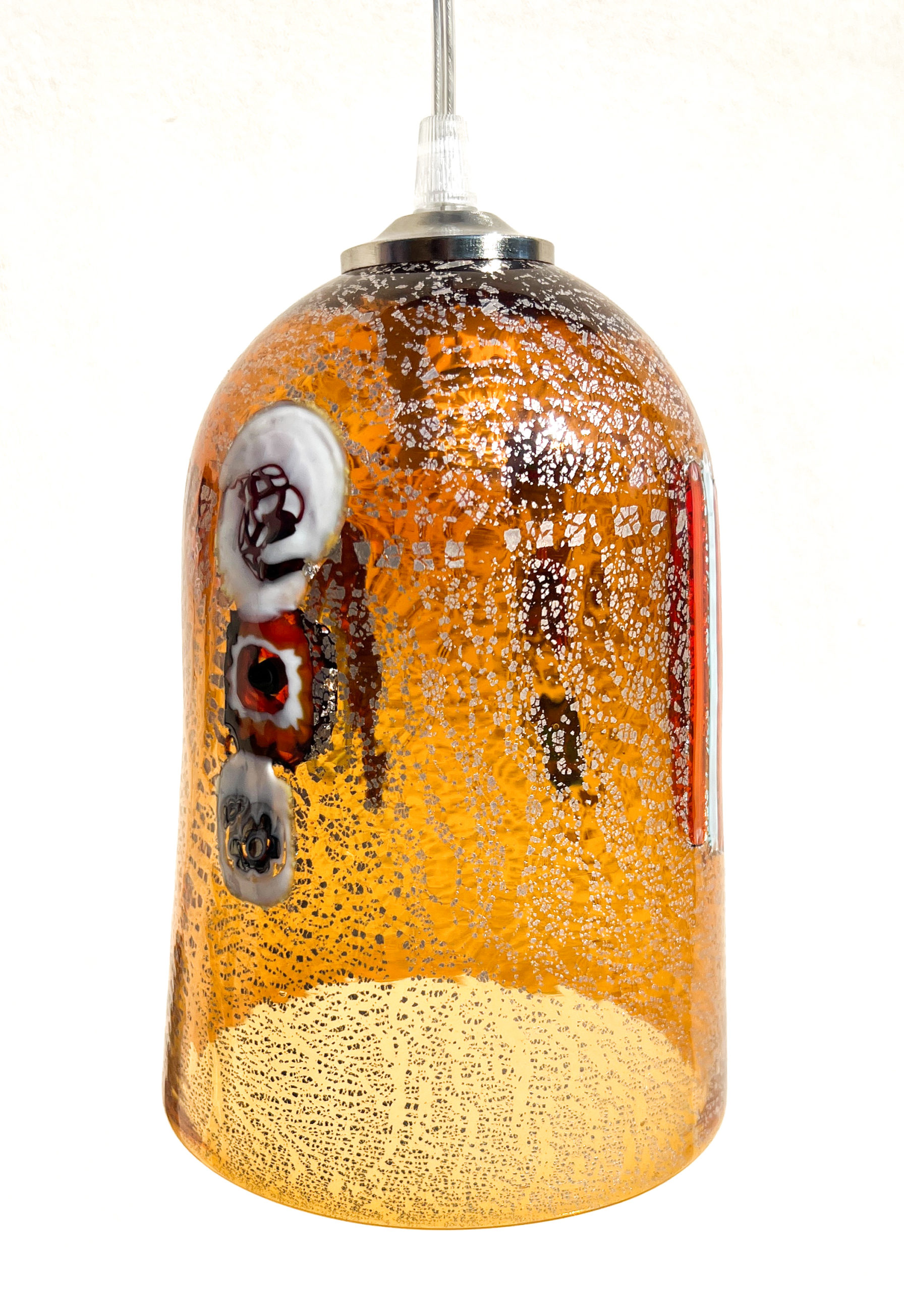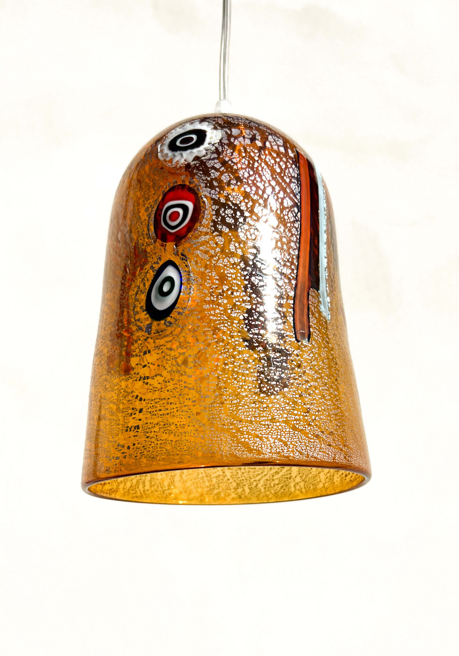 Cleo – Lampada In Vetro Di Murano Ambra Con Murrina Millefiori “Teone”