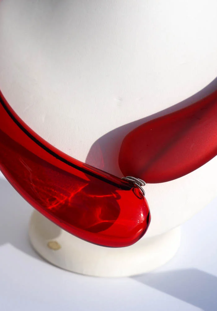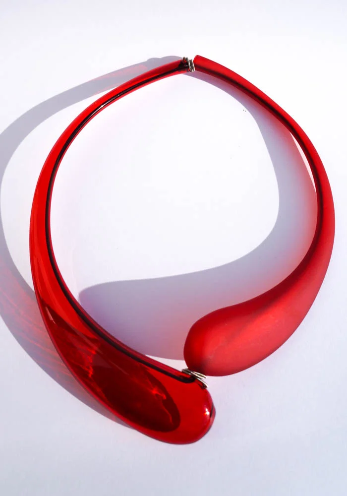 Magnifica lavorazione del vetro Murano in una collana a due gocce color rosso. Lavorata a mano e soffiata a bocca da Maestri vetrai di Murano (De Mio) con l’antichissima tecnica a lume. Le misure della collana sono adattabili per qualsiasi collo, essendoci un elastico all’interno. La collana è molto leggera.Disponibile anche in parure.
