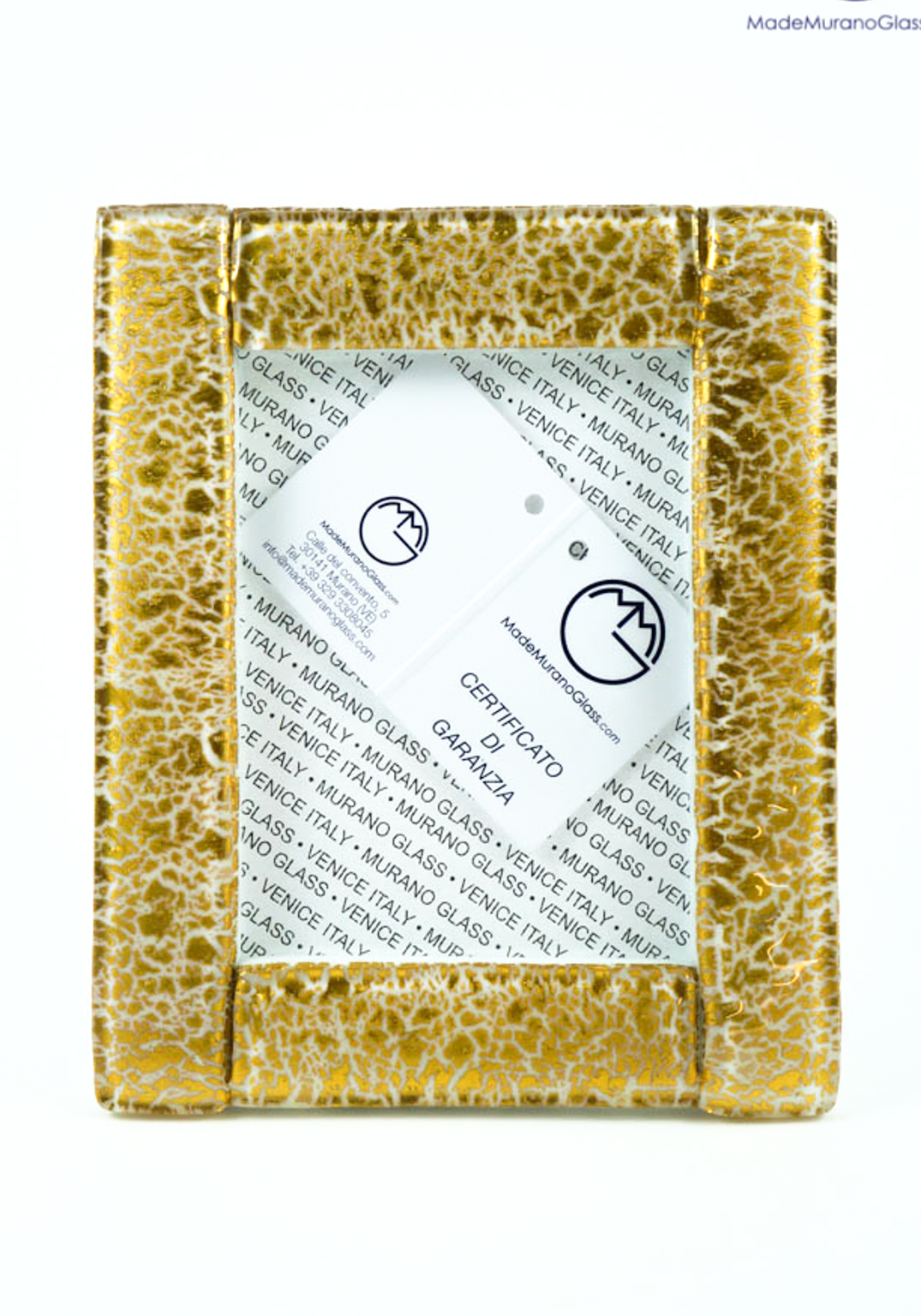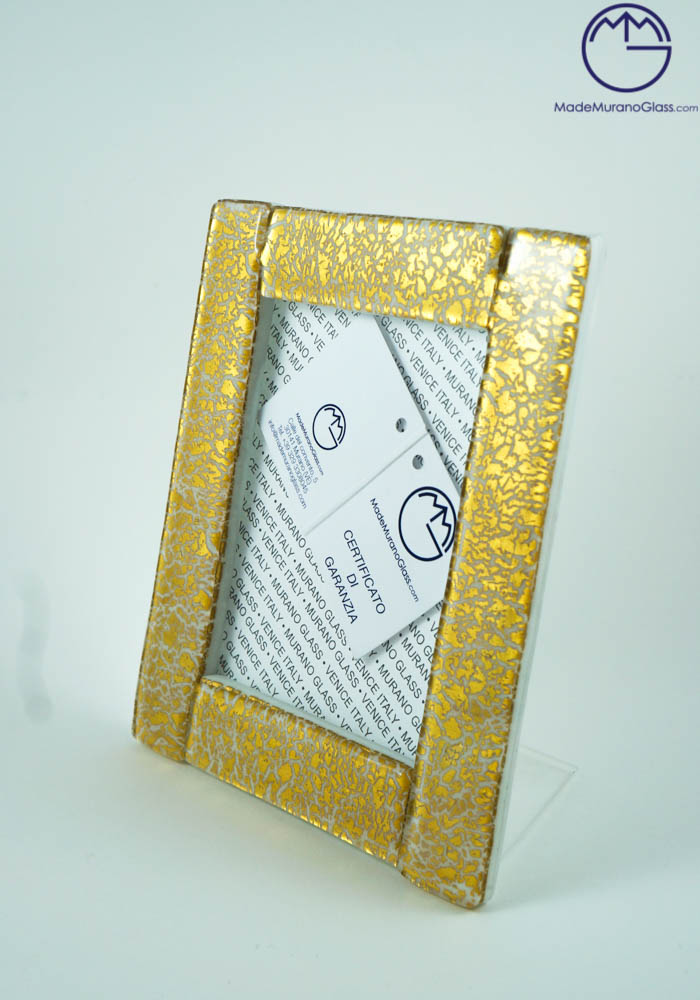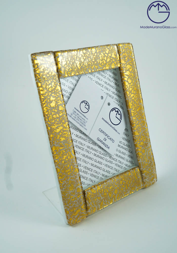 Dorao – Cornice Porta Foto In Vetro Di Murano Bianco Con Oro 24kt