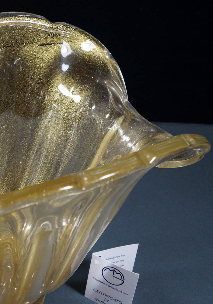 Toccando il centrotavola in vetro di Murano con mano noterete la lavorazione ondulata che la avvolge, come se fossero le piccole onde della laguna veneziana.
