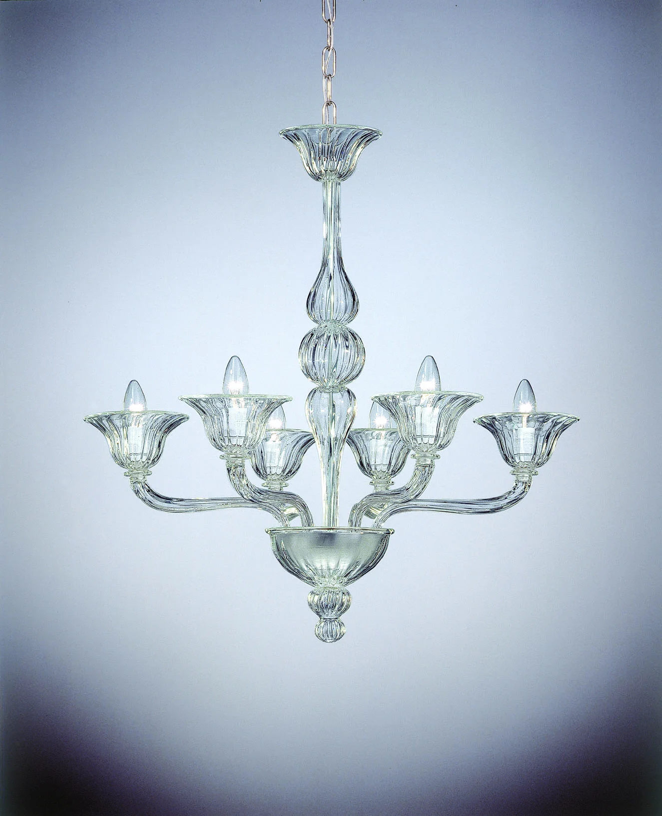 Elegantissimo lampadario Murano con 6 luci color tutto in cristallo.