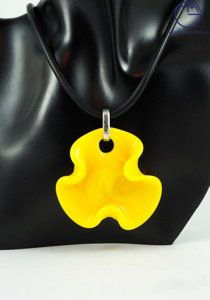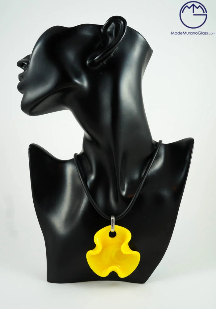 Le nostre collane in vetro di Murano sono interamente fatte a mano con la tecnica della lavorazione del vetro a “Lume”, come questo fantastico gioiello di colore giallo in vetro soffiato di Murano eseguito dai nostri Maestri vetrai Muranesi.