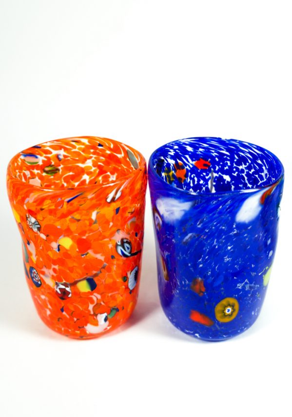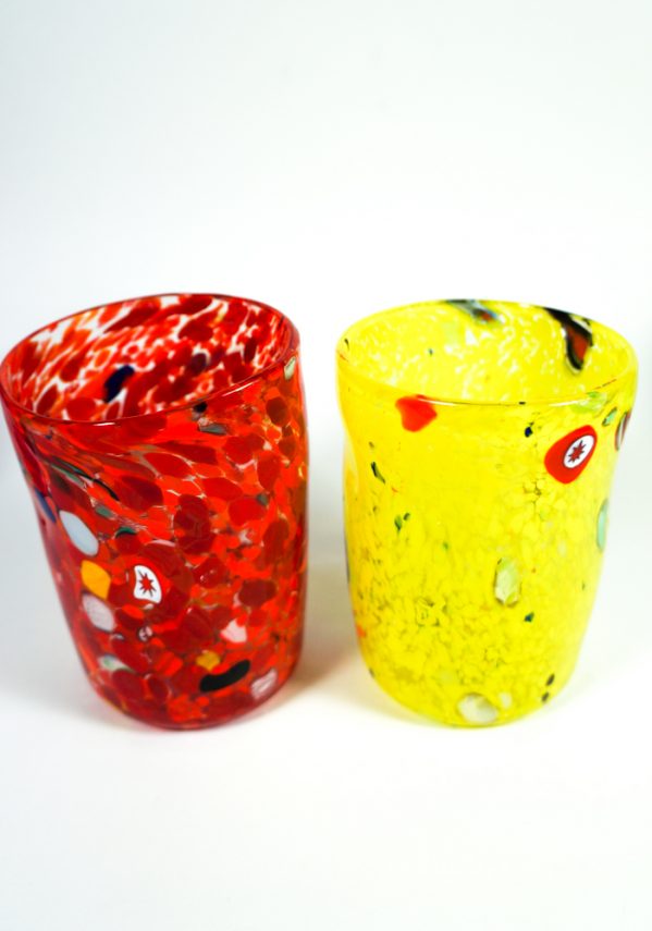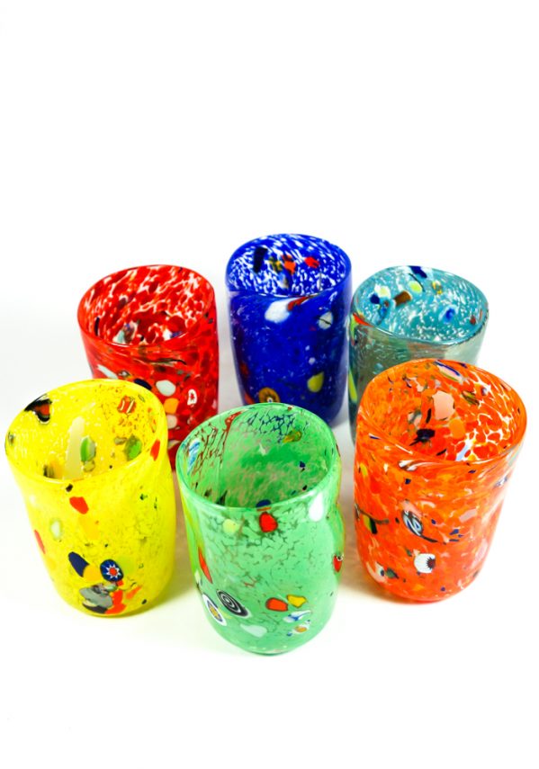 Flamenco: Set di 6 bicchieri in vetro di Murano con lavorazione a “Mace” colorate assortite.