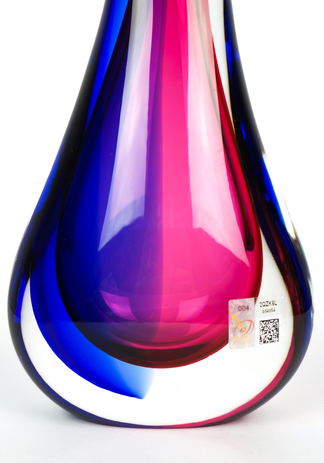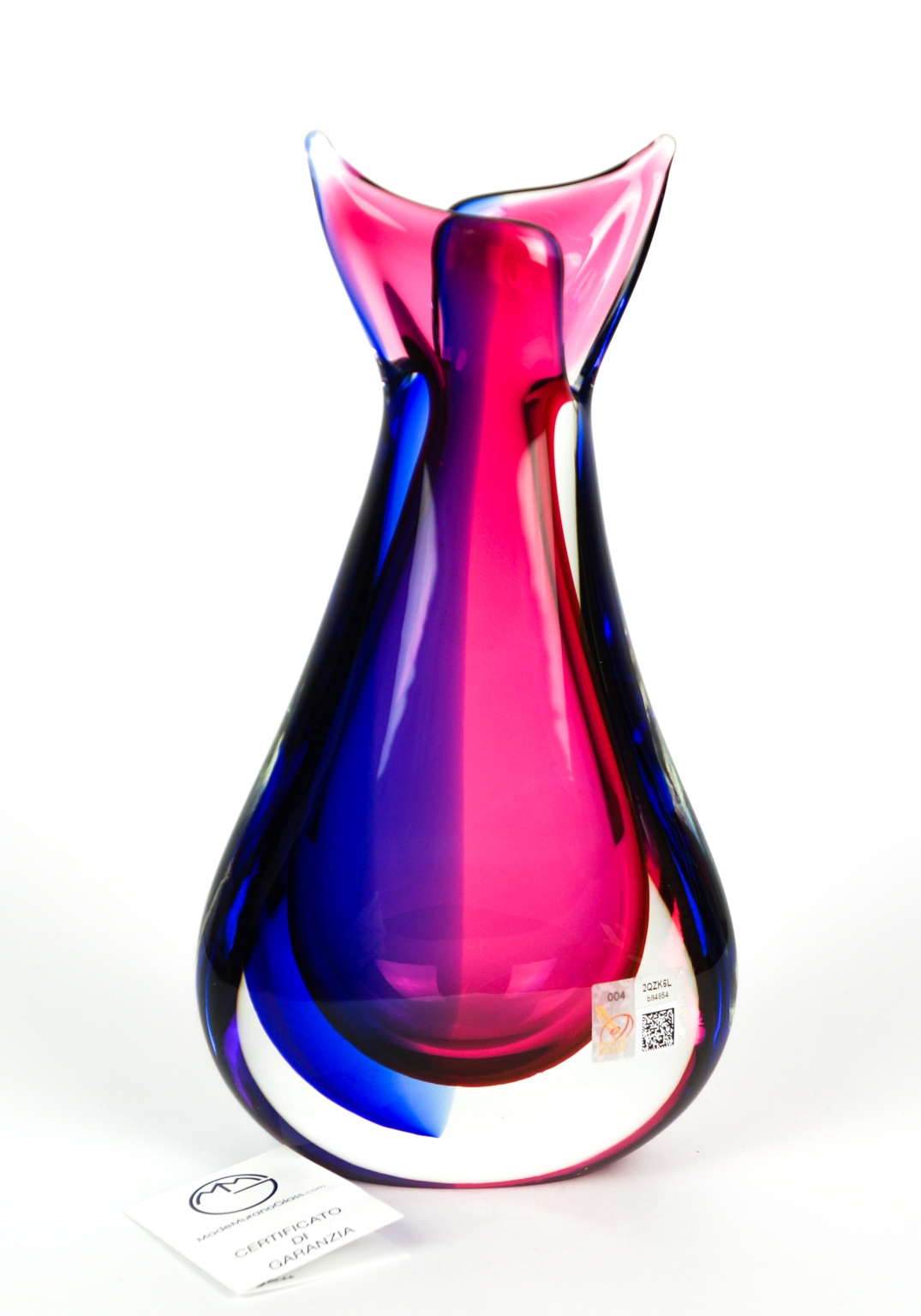 Etichetta adesiva del Vetro Artistico® Murano e firma incisa dal Maestro vetraio sul fondo dell’ opera.