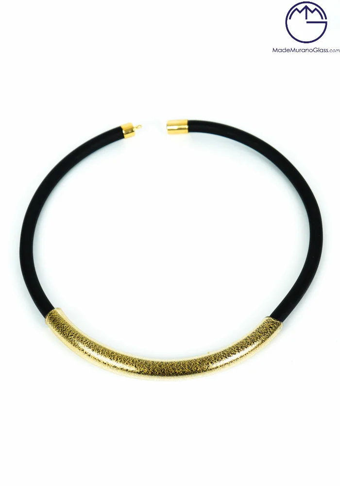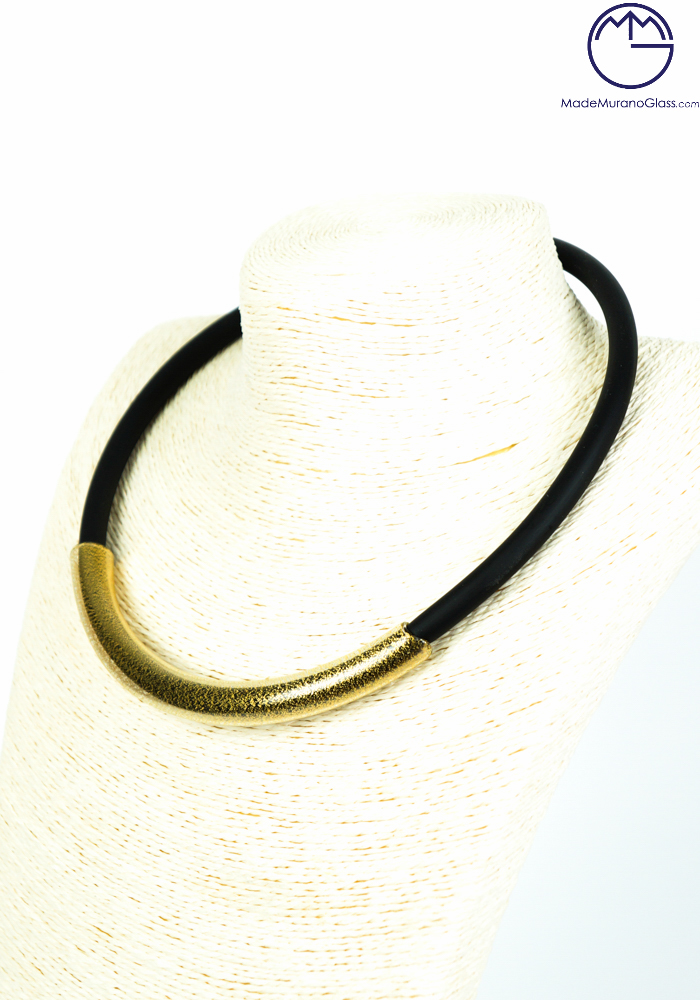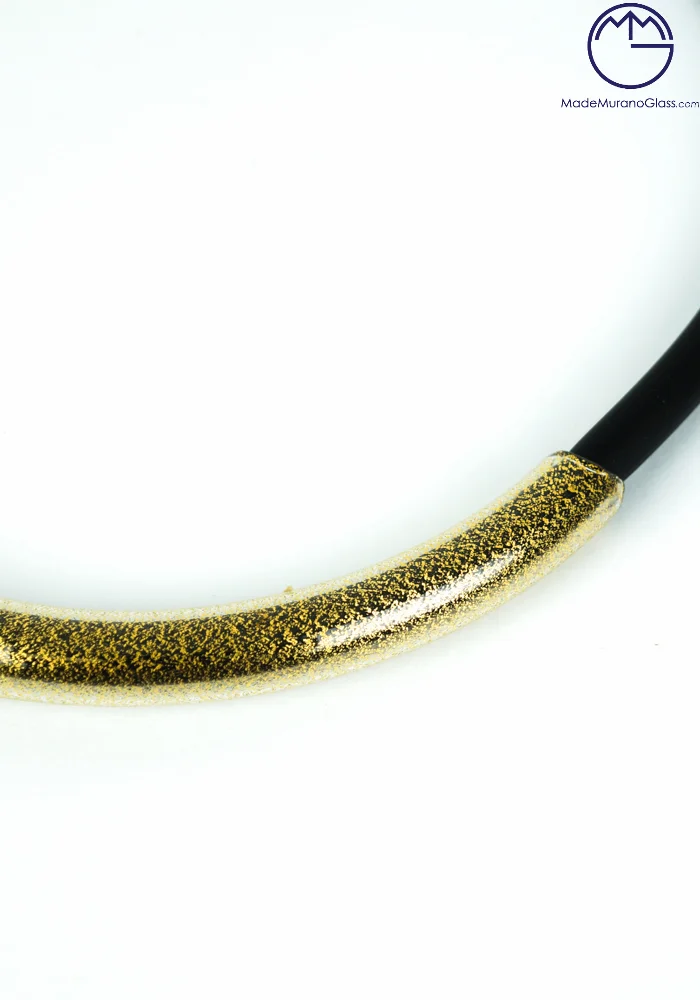 Collana in vetro Veneziano con vera foglia oro 24 carati su montatura in caucciù.