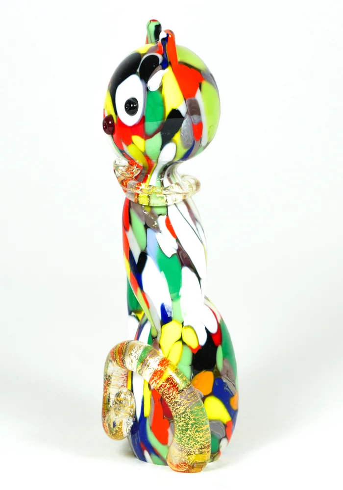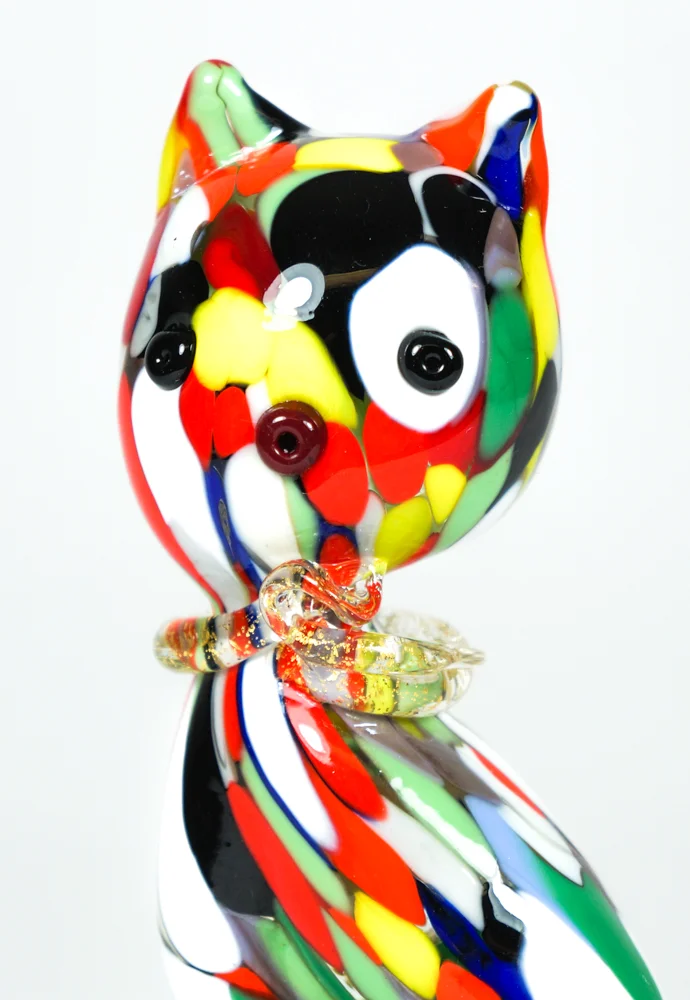 Silvestro – Gatto In Vetro Di Murano Con Mace Multicolore