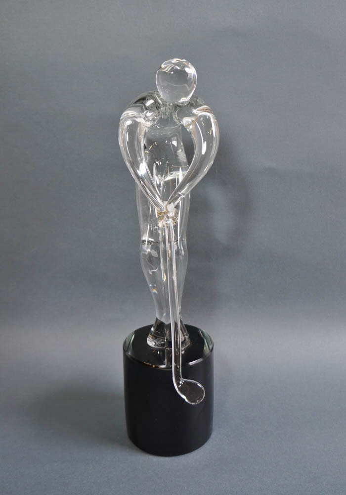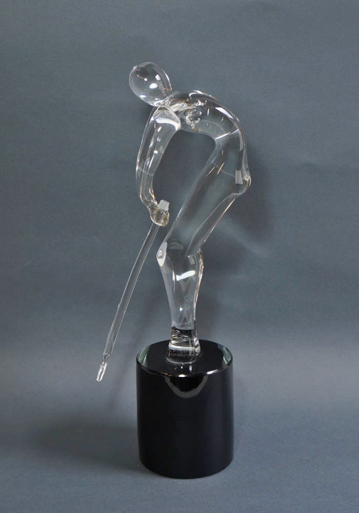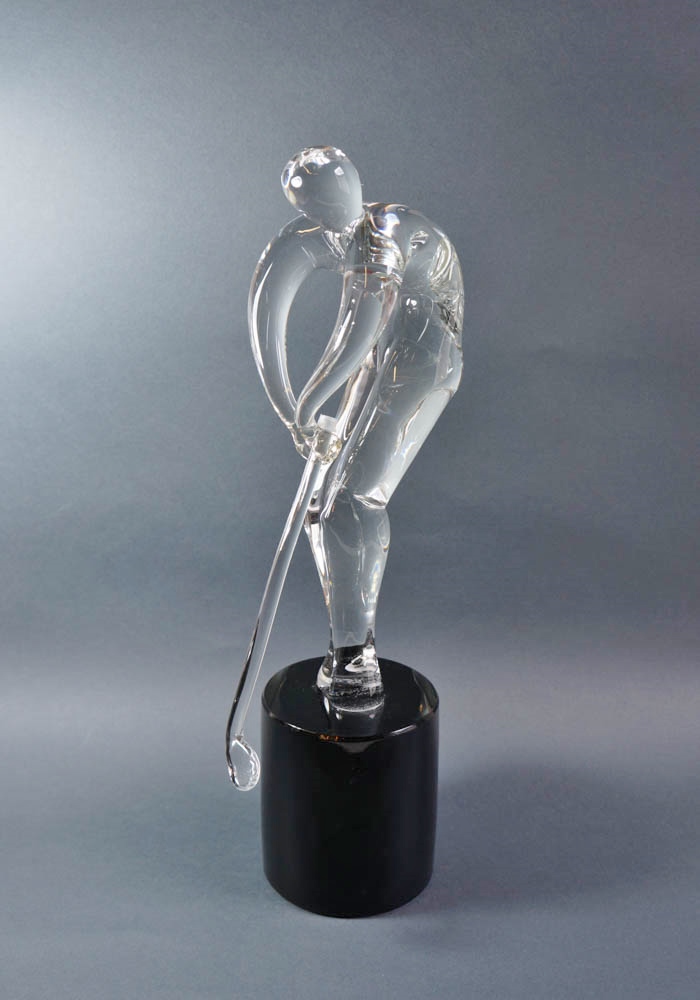 La lavorazione del vetro di Murano rappresentata dal nostro famoso Maestro vetraio Anatrà Renato in una fantastica ed unica scultura figurina di golfista in cristallo con base nera. Pezzo di altissima qualità e di rara bellezza. Nella base il grande Maestro vetraio Anatrà, incide a freddo la propria firma, rendendo le opere per Made Murano Glass uniche al mondo!