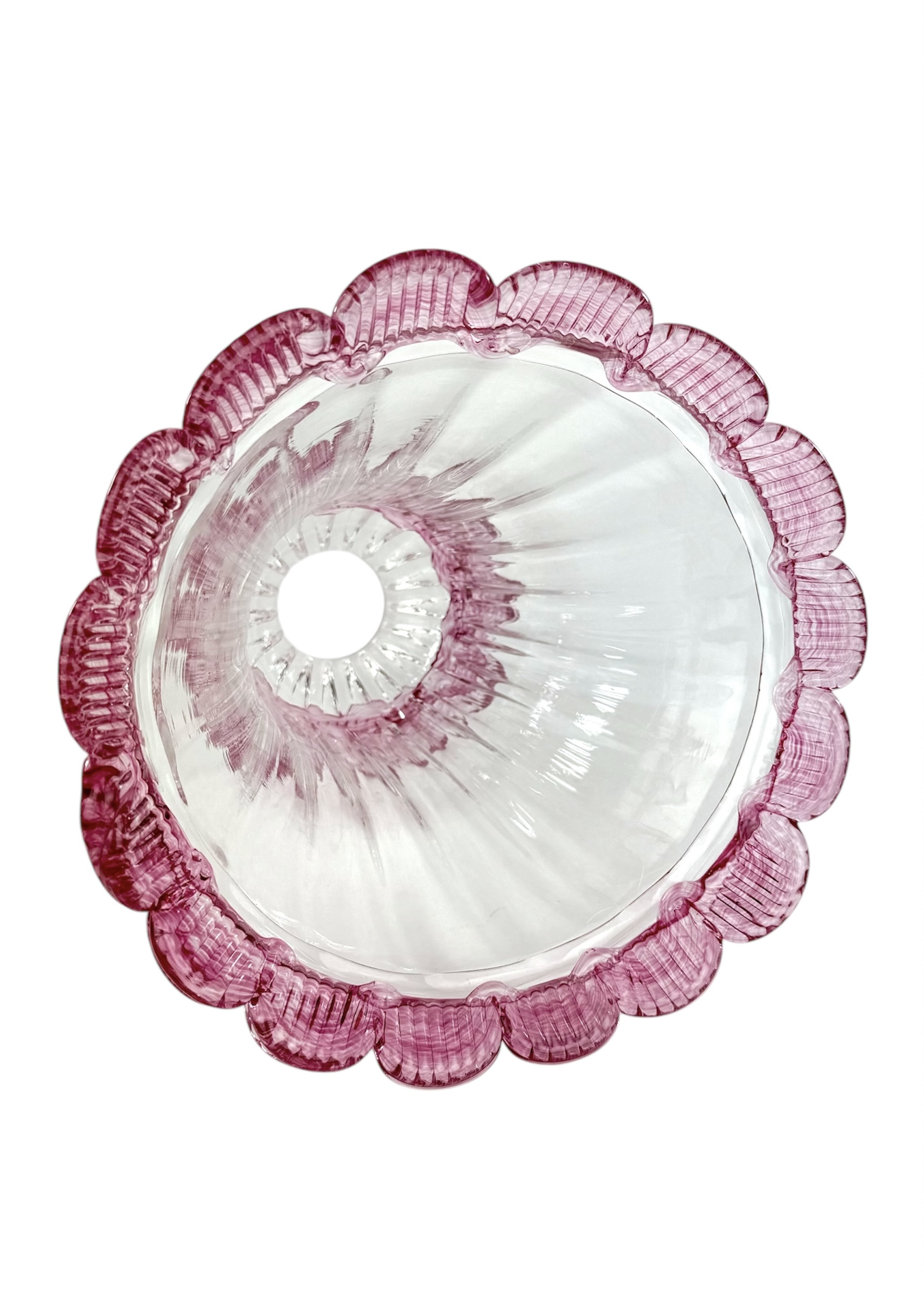 Classica lampada sospensione veneziana a 1 luce in vetro Murano colore cristallo con decoro ametista.