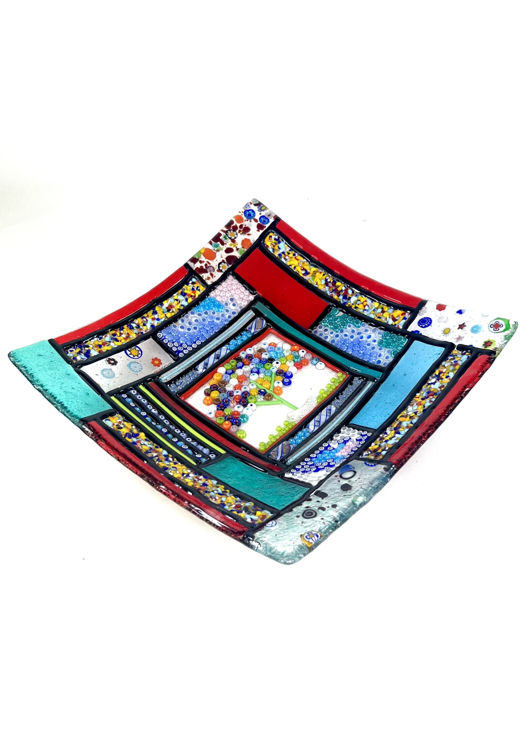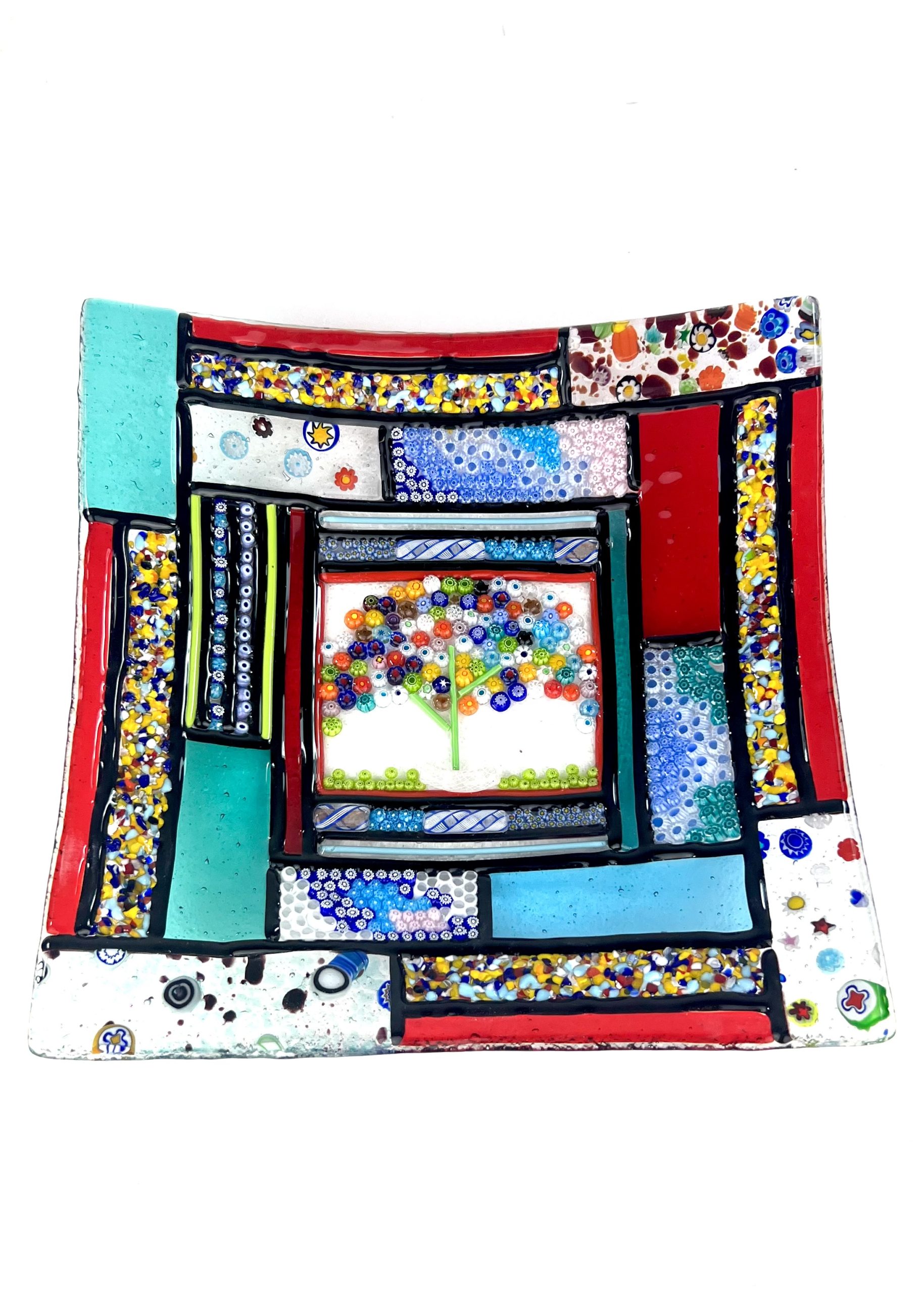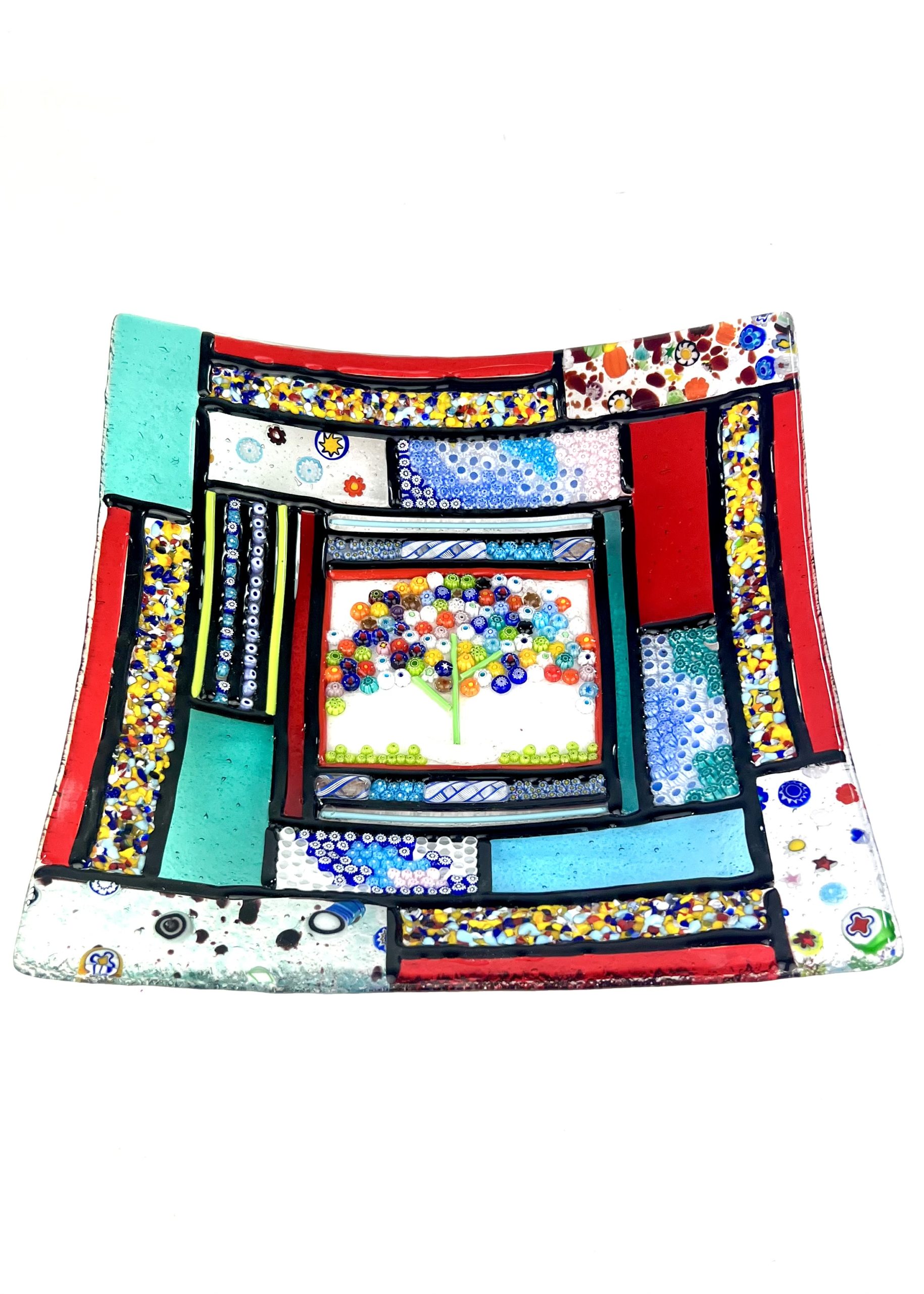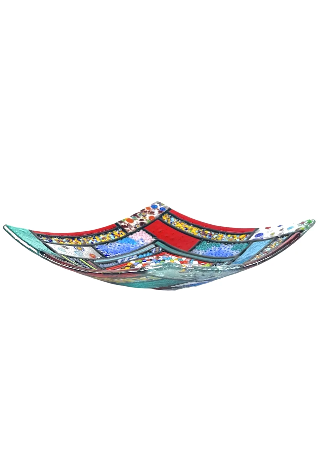 Centrotavola in vetro di Murano realizzato a mano con la tecnica della vetrofusione.
