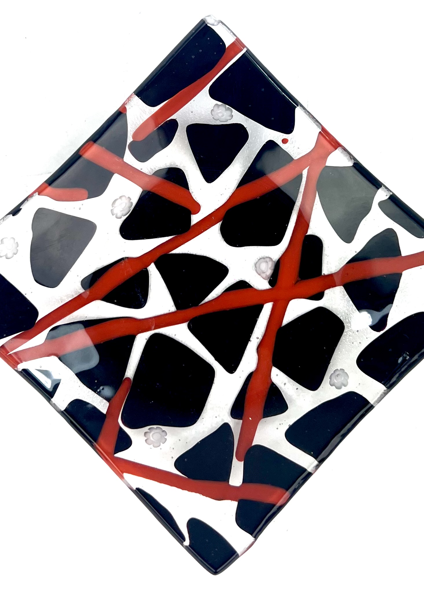 Liam – Piatto In Vetro Di Murano Nero Con Kanne Rosse “Houston”