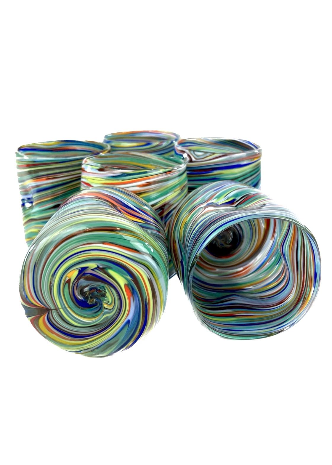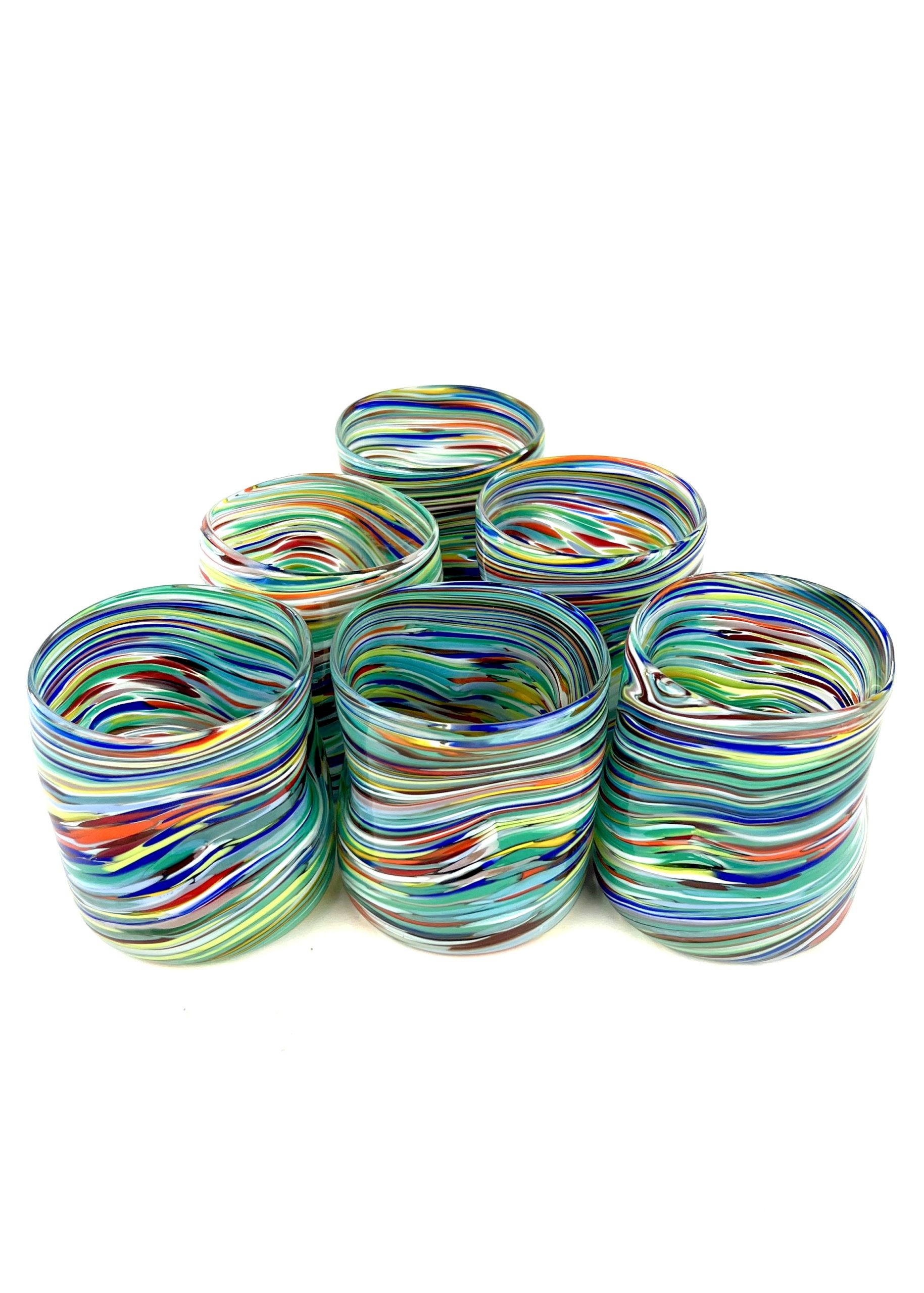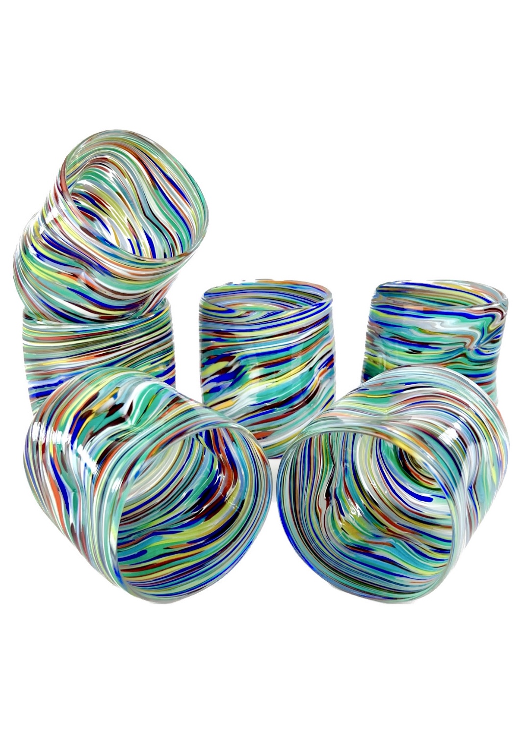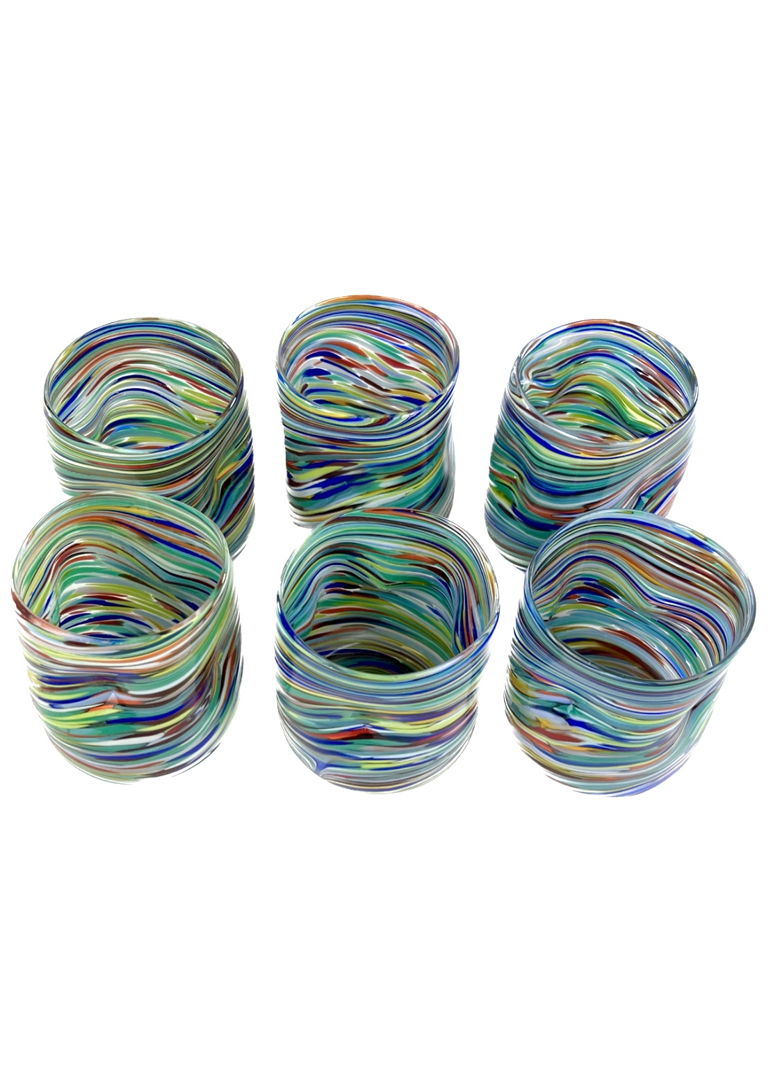 Collezione Mace Menae – Set di Sei Bicchieri in Vetro di Murano Multicolore