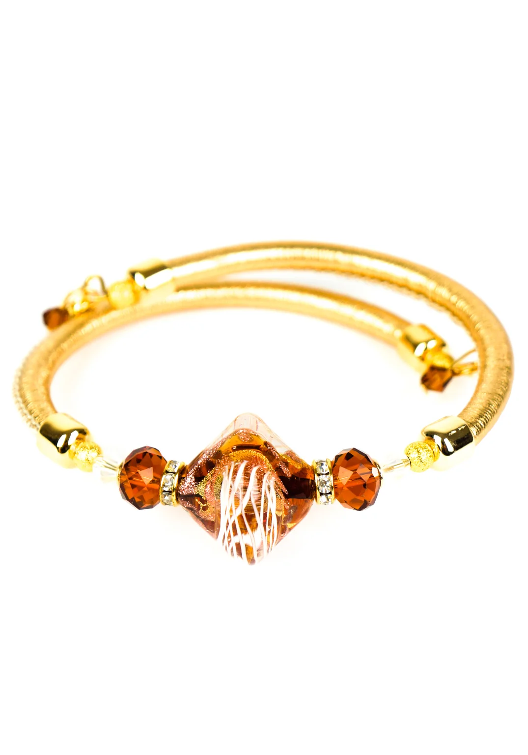 La perla di questo fantastico Bracciale è a forma di Rombo, colore ambra, foglia oro 24kt e filigrana.