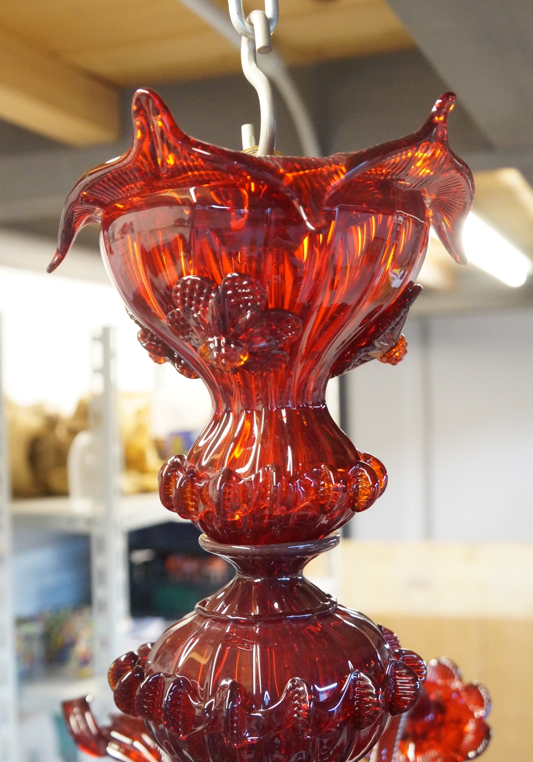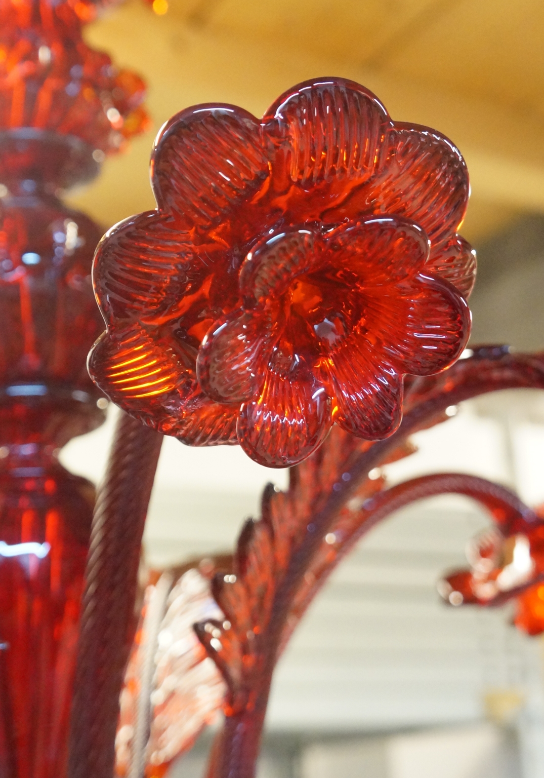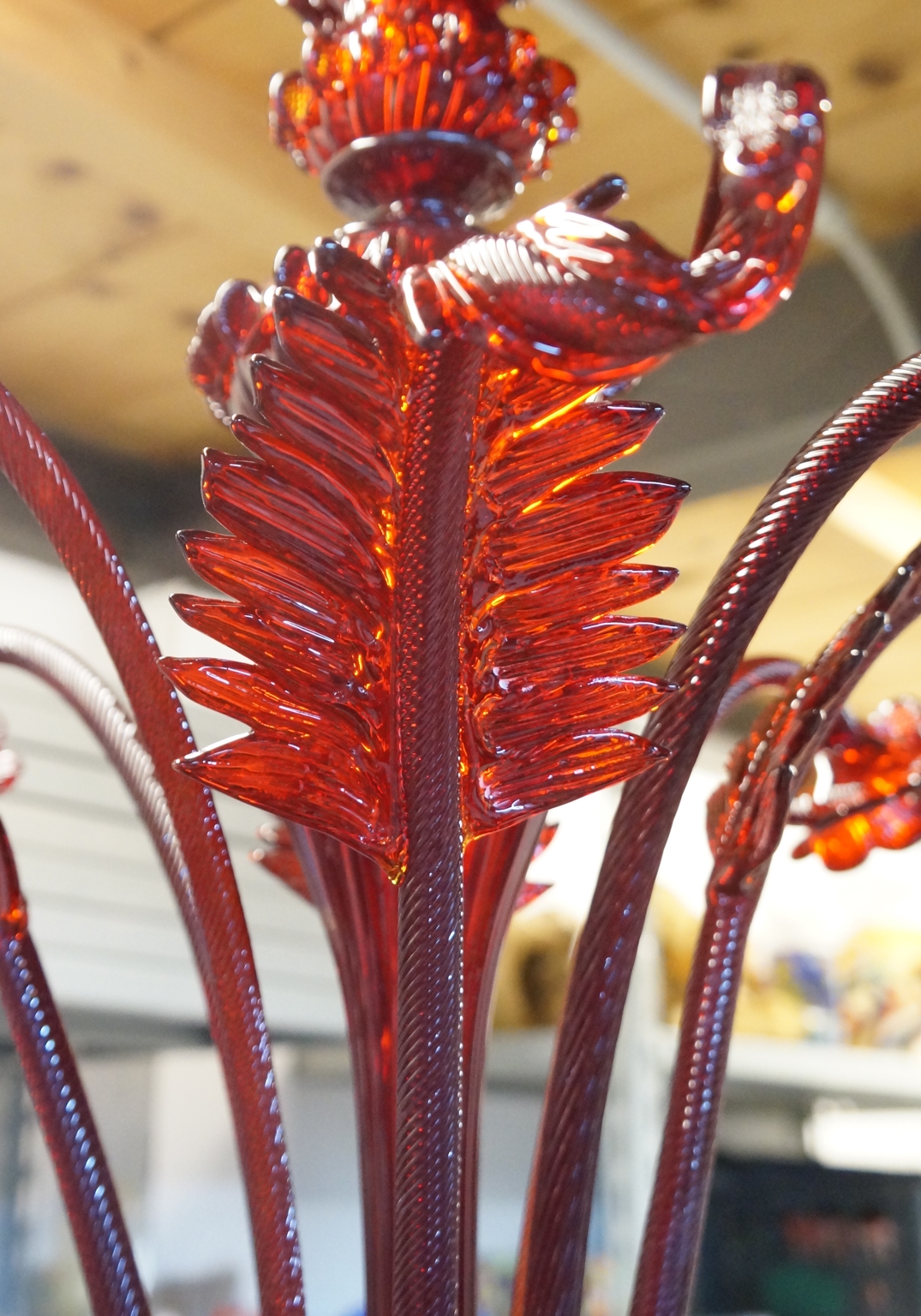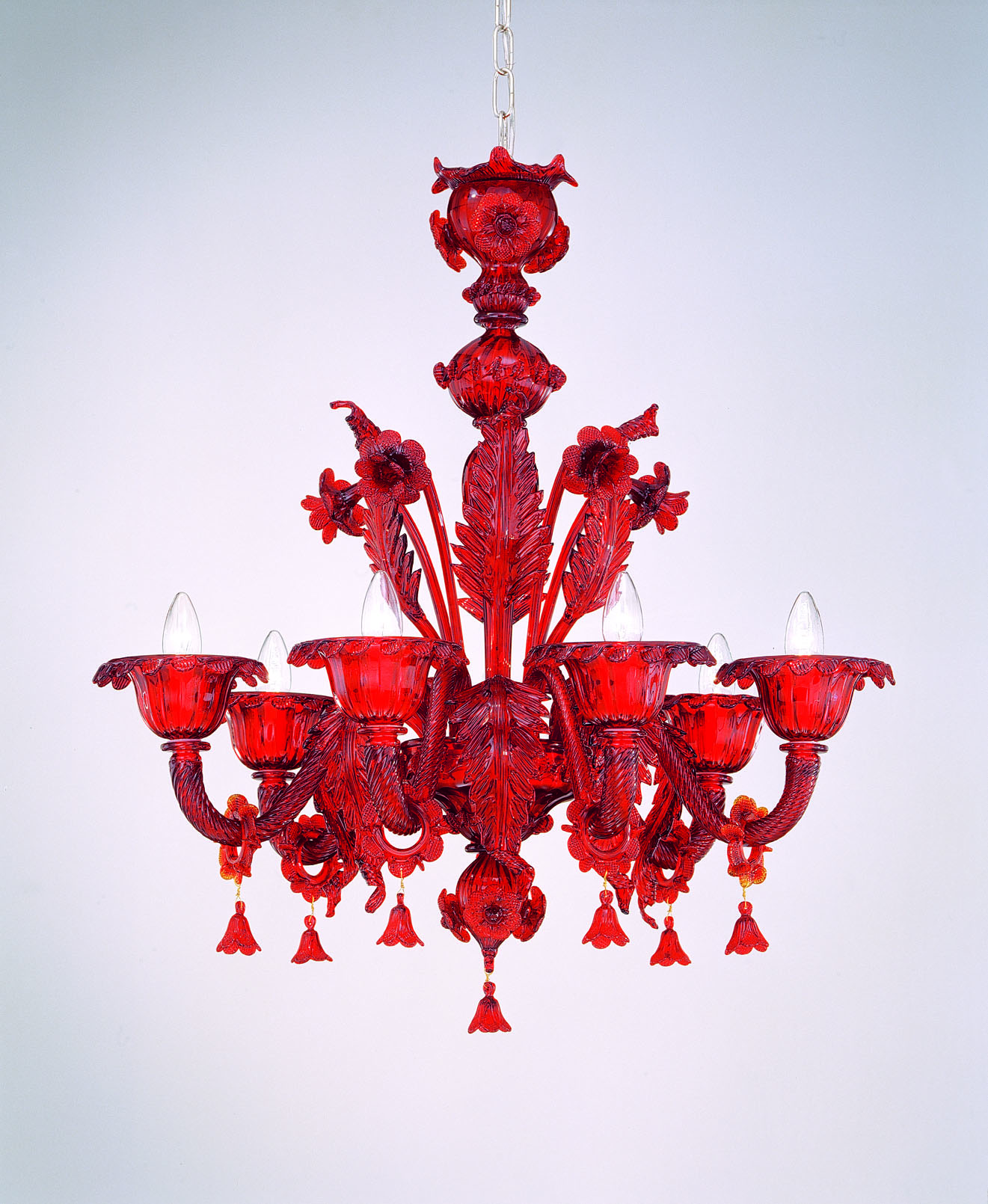 Marte è un fantastico lampadario vetro Murano a 6 luci colore tutto rosso.