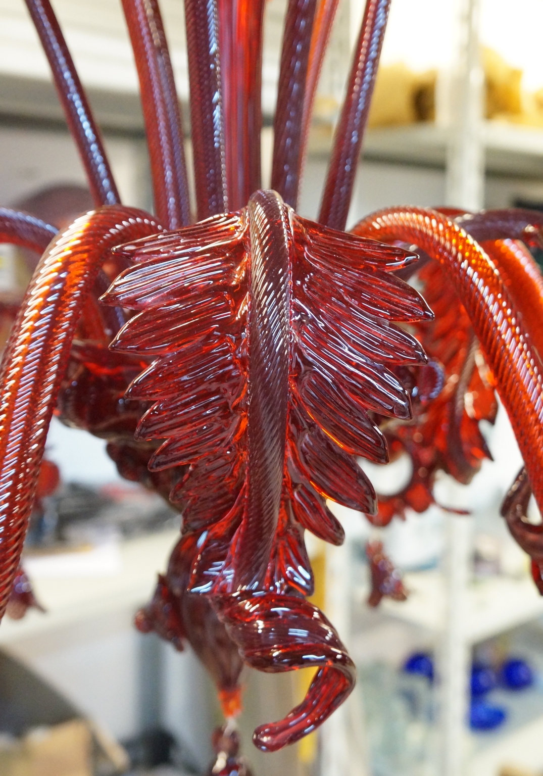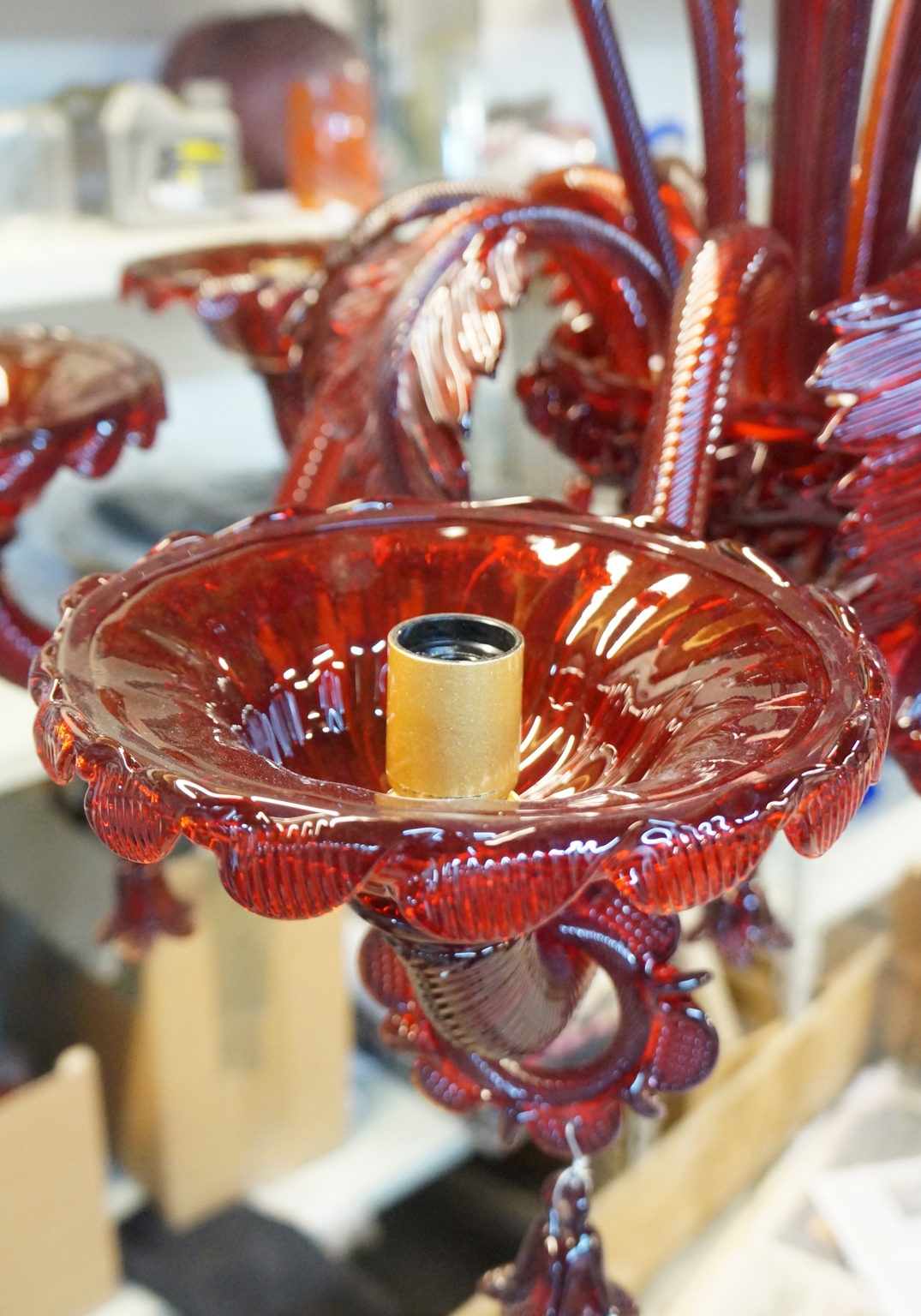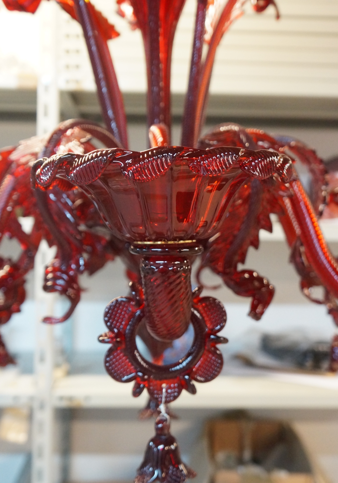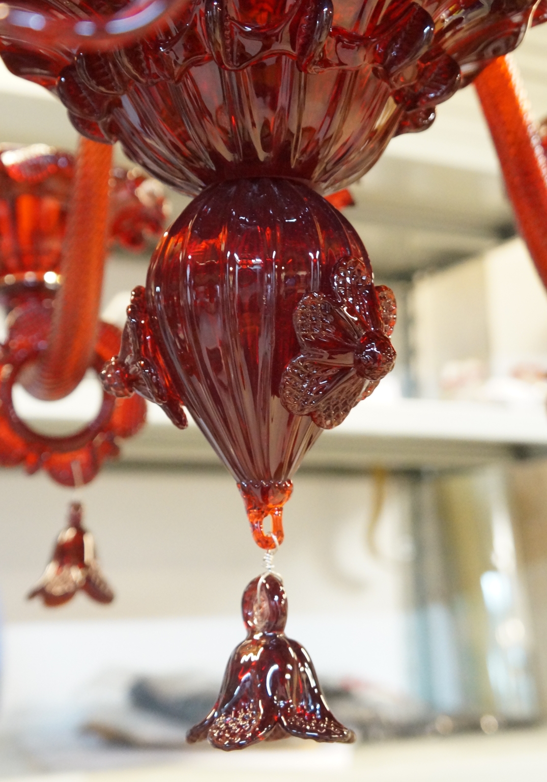 Marte è un fantastico lampadario vetro Murano a 6 luci colore tutto rosso.