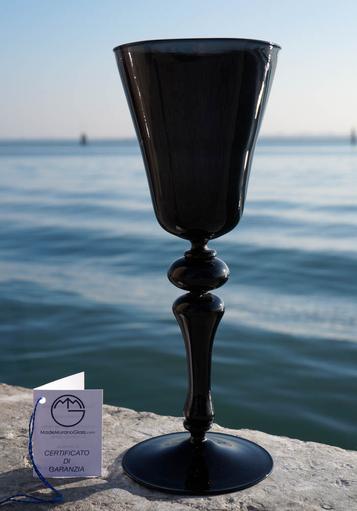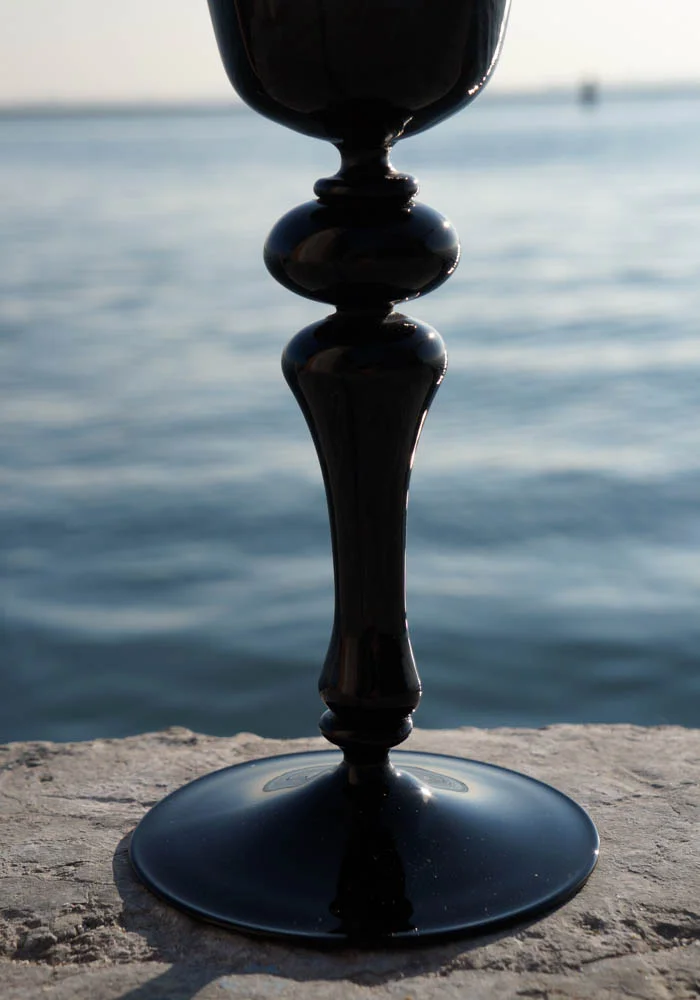 Calice in vetro Veneziano nero realizzato a mano dai nostri artigiani Muranesi.