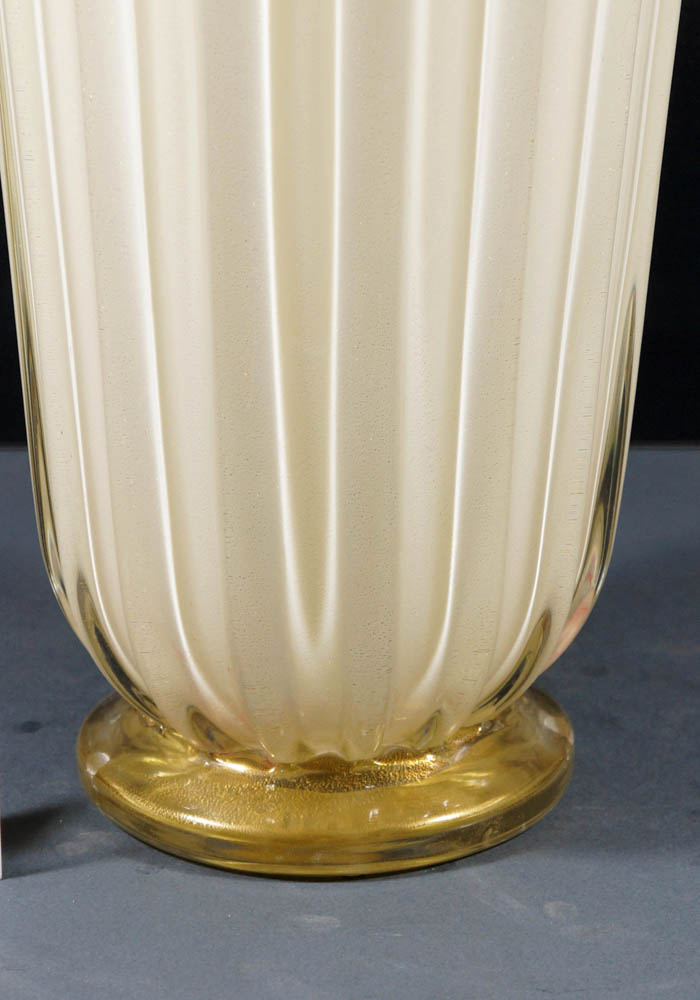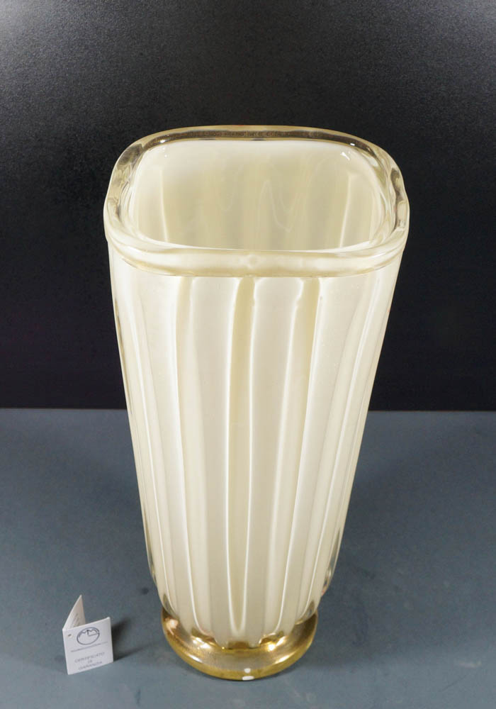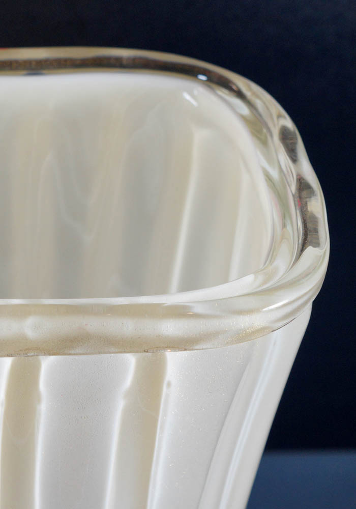 Magnifico vaso in vetro soffiato di Murano colore bianco ricoperto di foglia oro 24 carati.