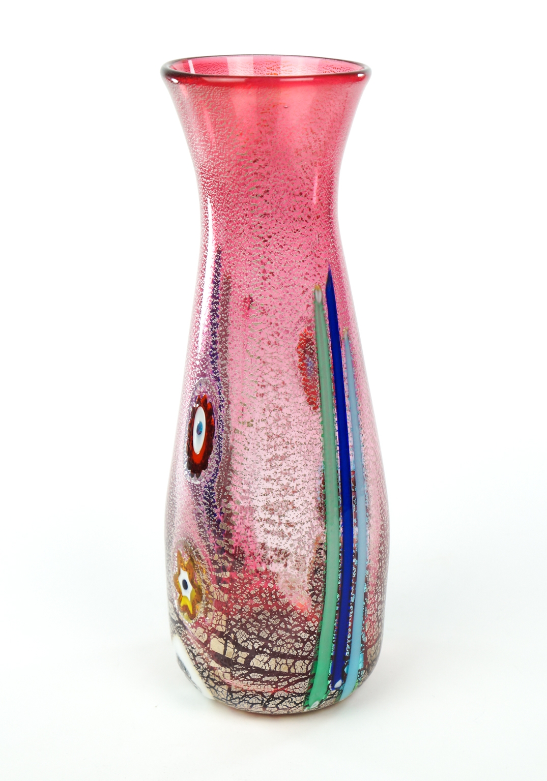 Caraffa realizzata con murrine e bacchette di vetro multicolore.