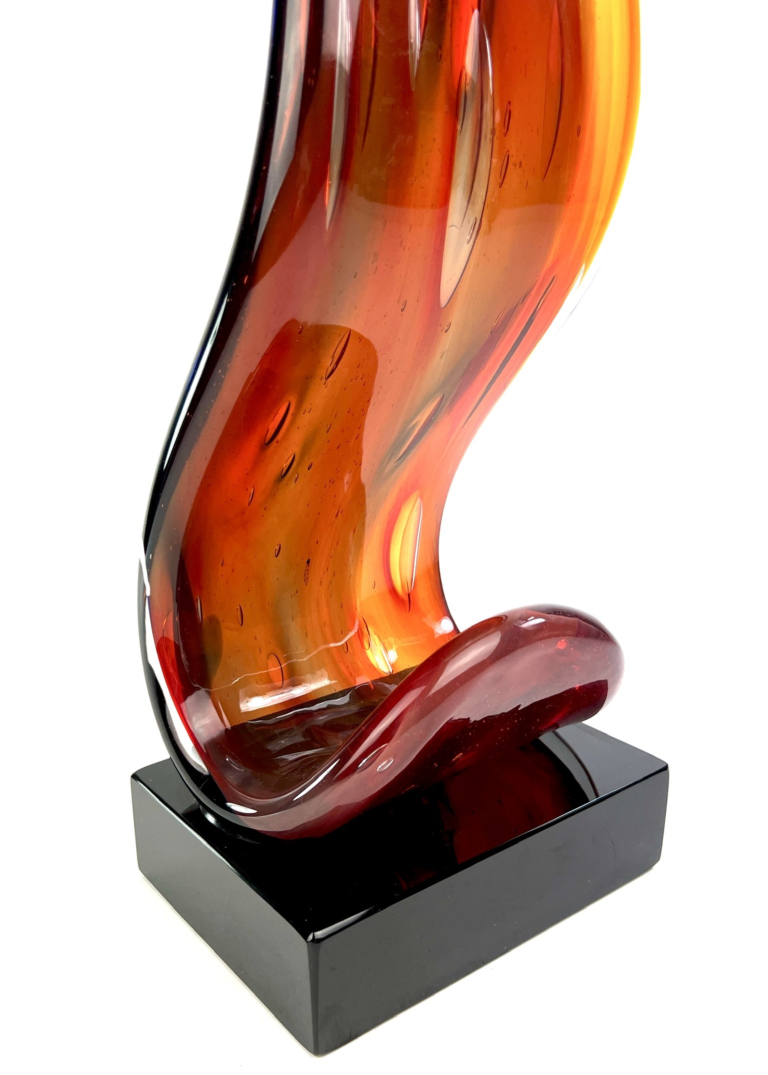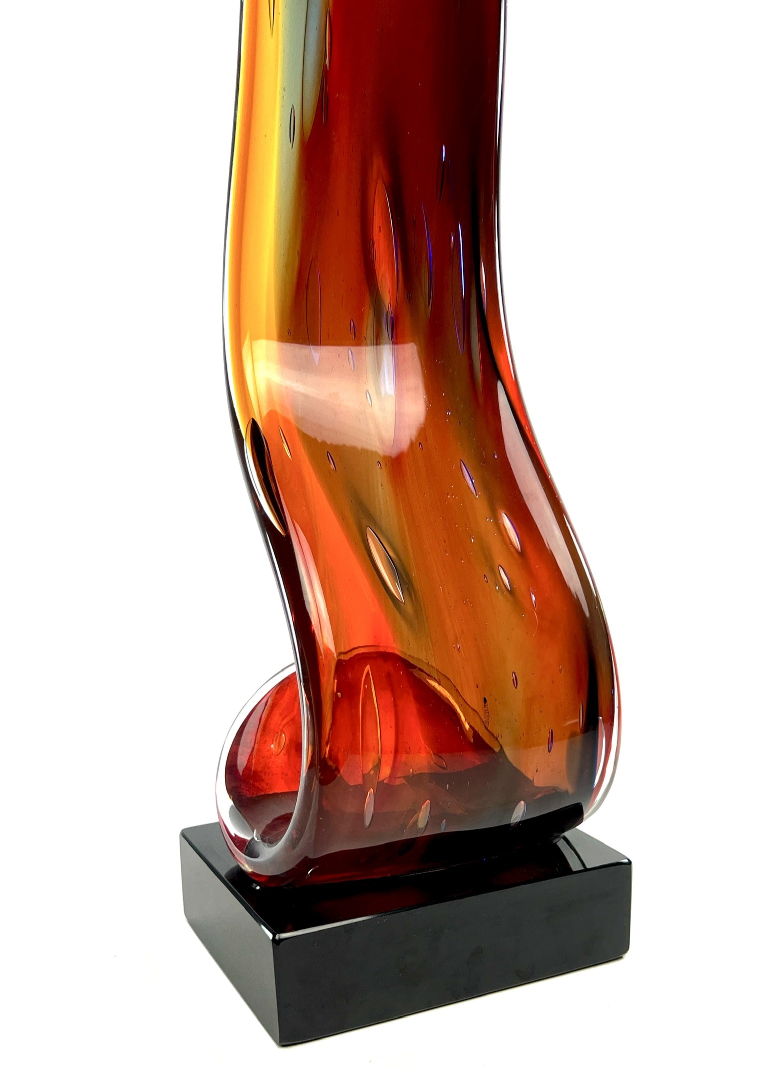 Scultura Nastro in Vetro di Murano multicolore con base colore nero.