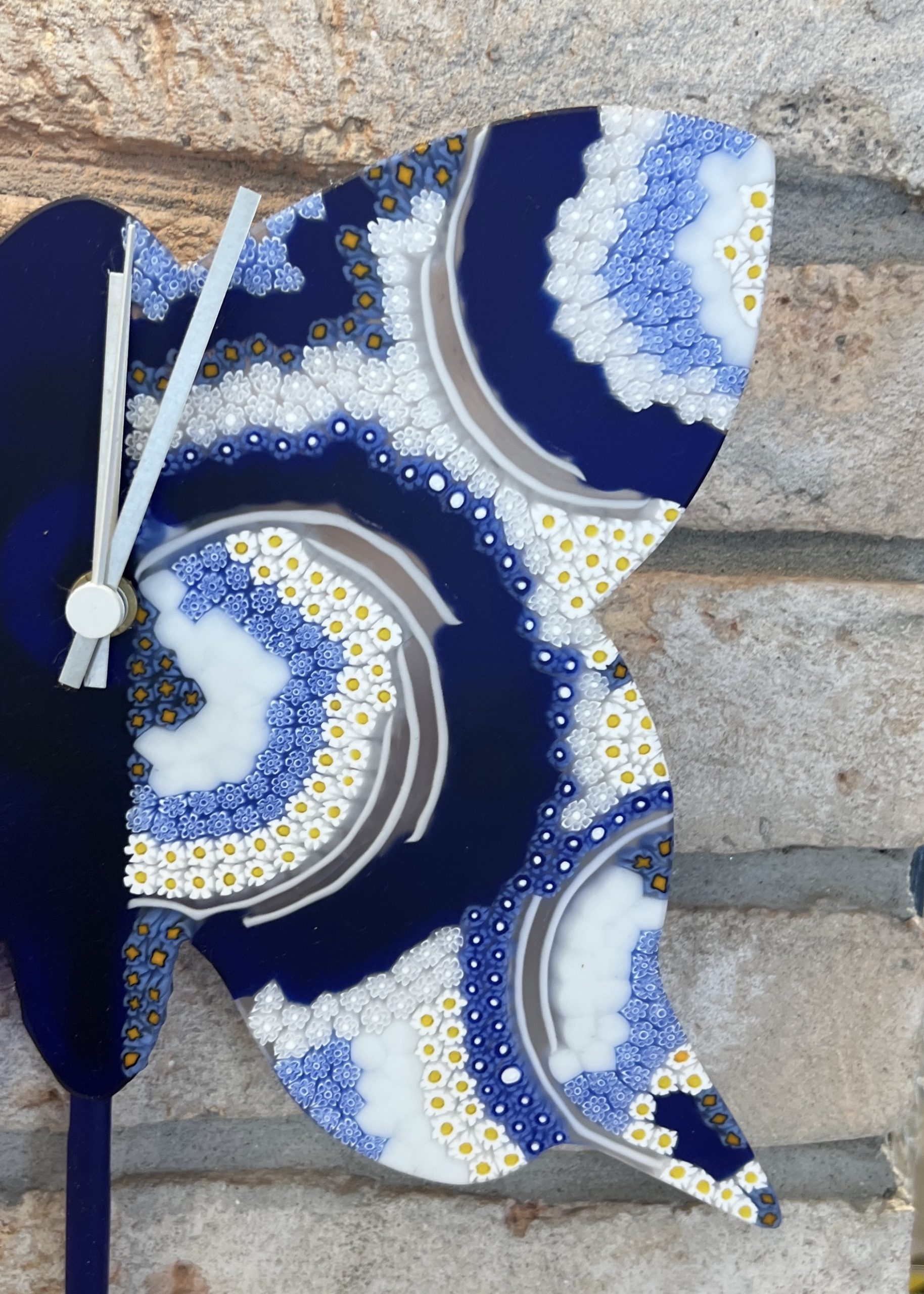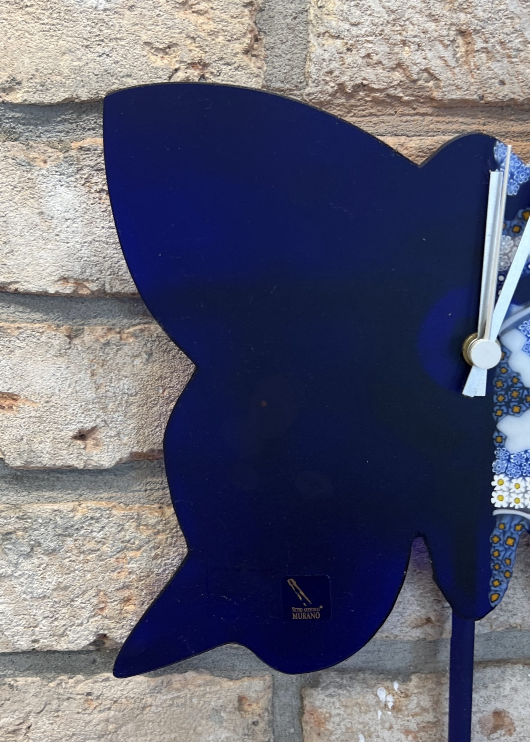 Orologio blu con Murrina millefiori a forma di Farfalla realizzato dai nostri abili e precisi maestri vetrai di Murano.