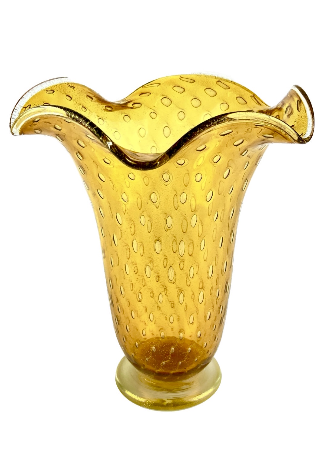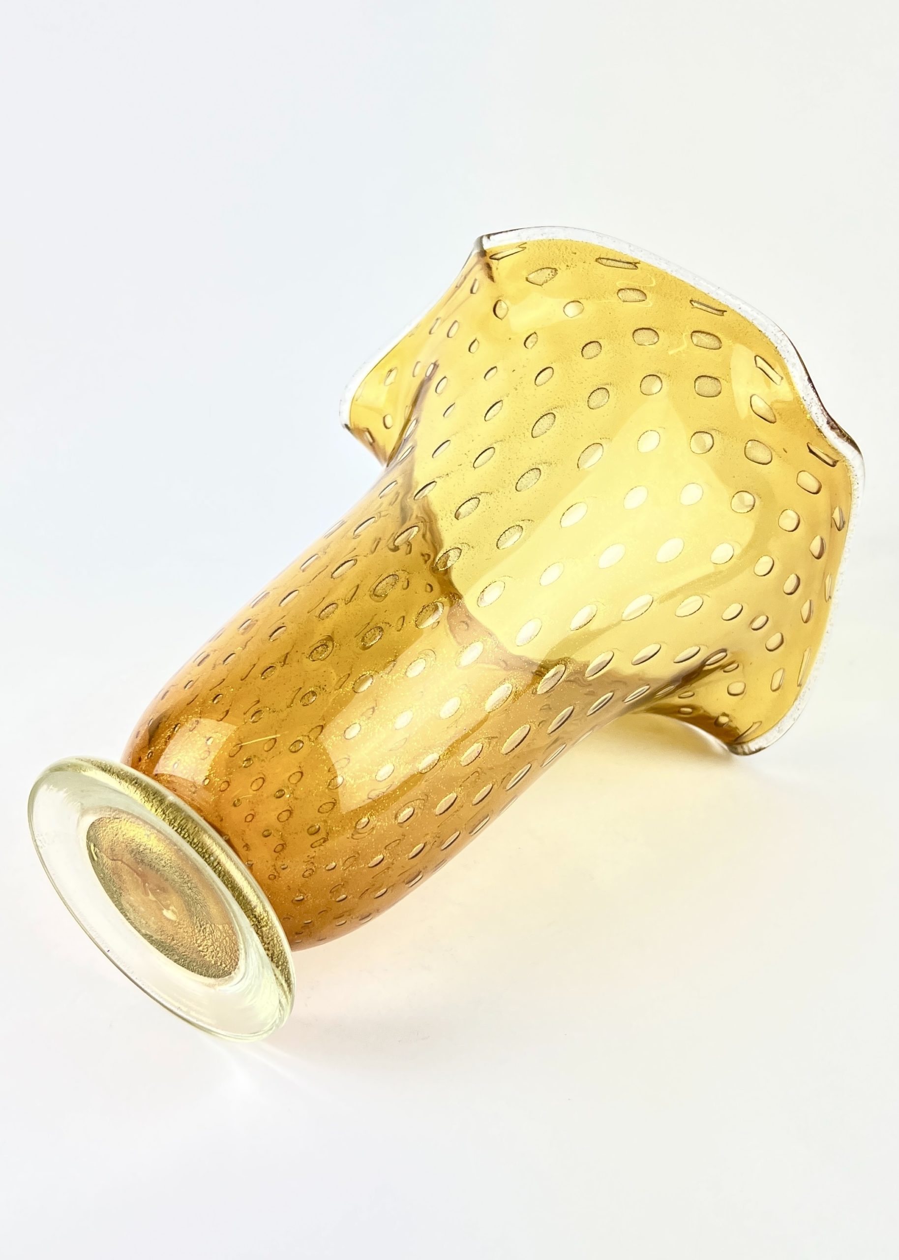Vaso in vetro soffiato di Murano con decorazioni in foglia oro 24 carati realizzato con la tecnica della lavorazione del vetro “Balloton”.