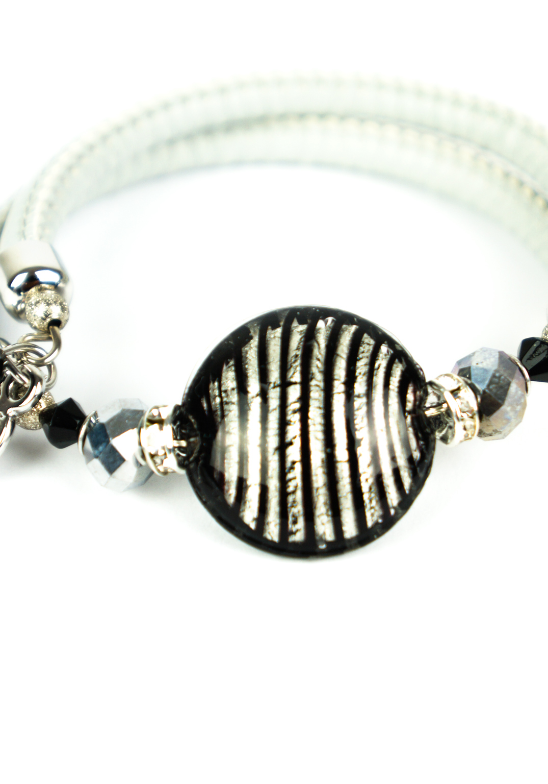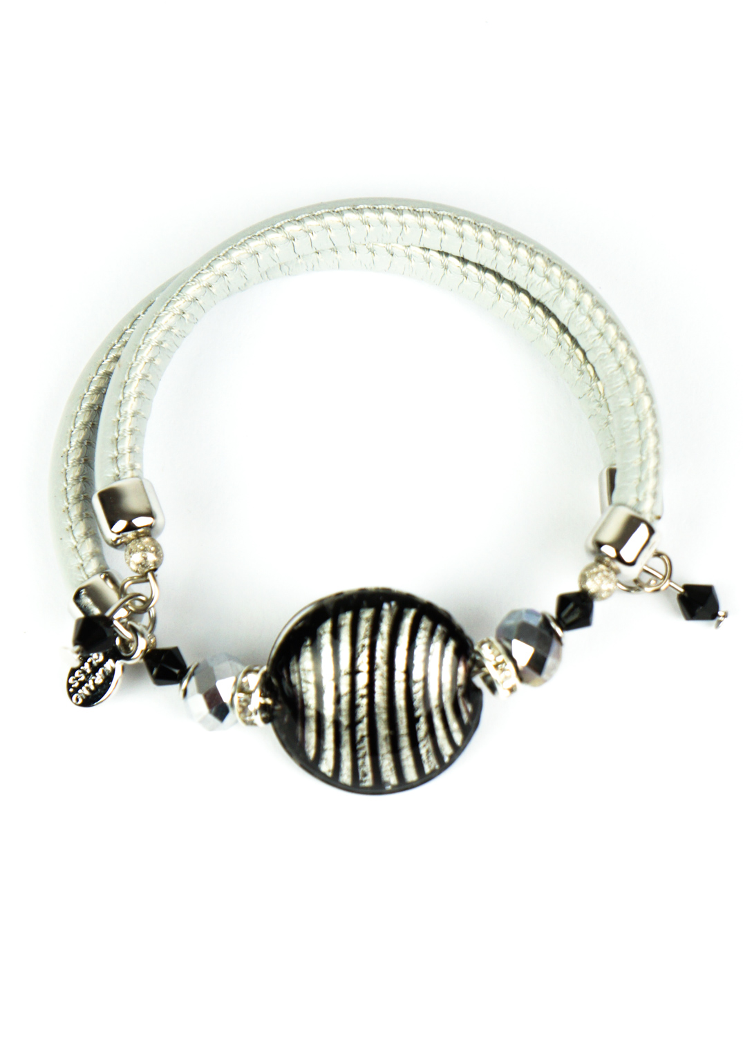 La perla di questo fantastico Bracciale è a forma bombata, colore nero e foglia argento.