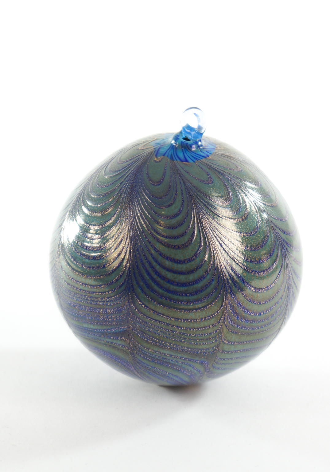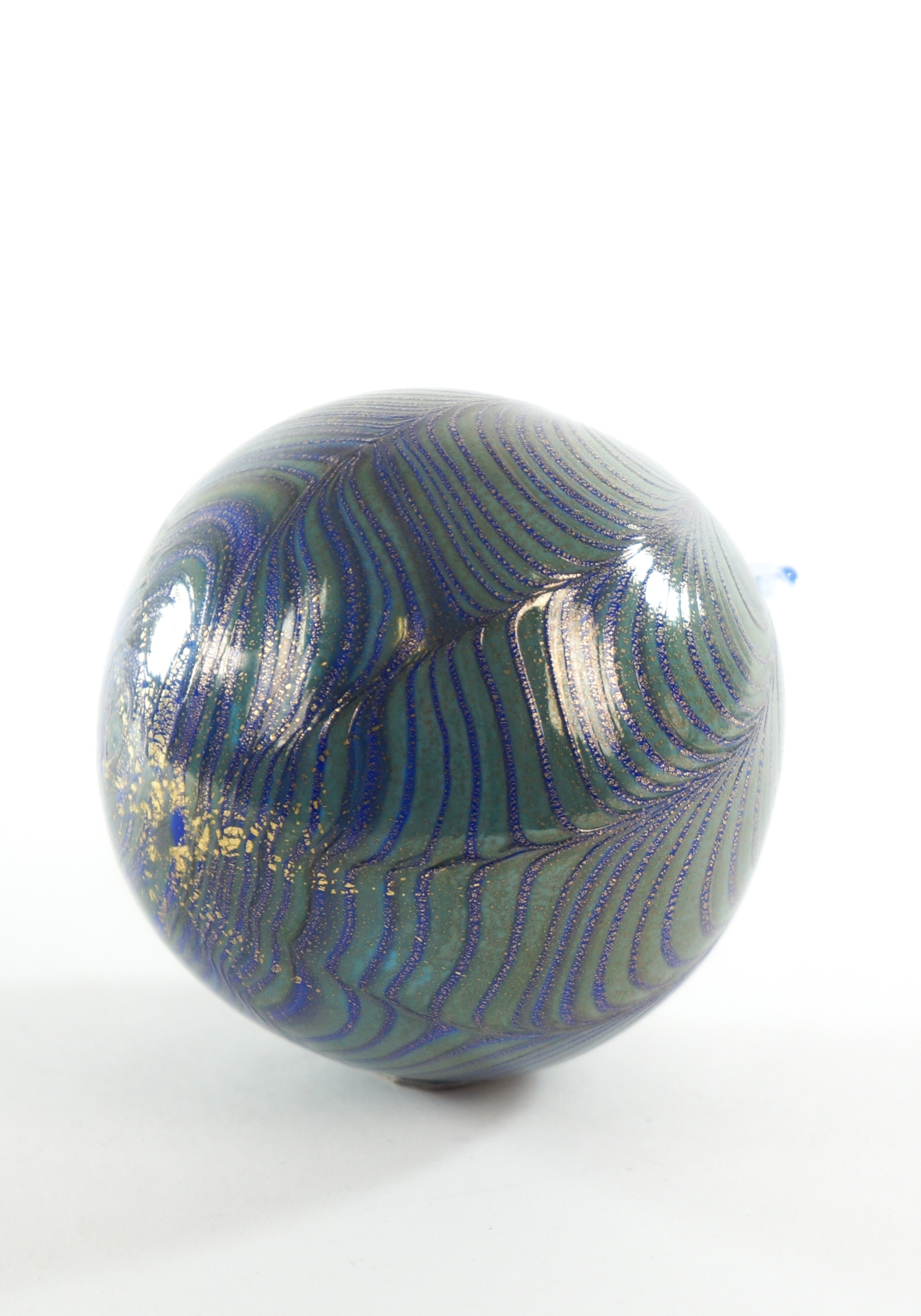 Palla di Natale Blu in vetro Di Murano con decorazioni a Fenicio e ricoperta in foglia oro 24k.