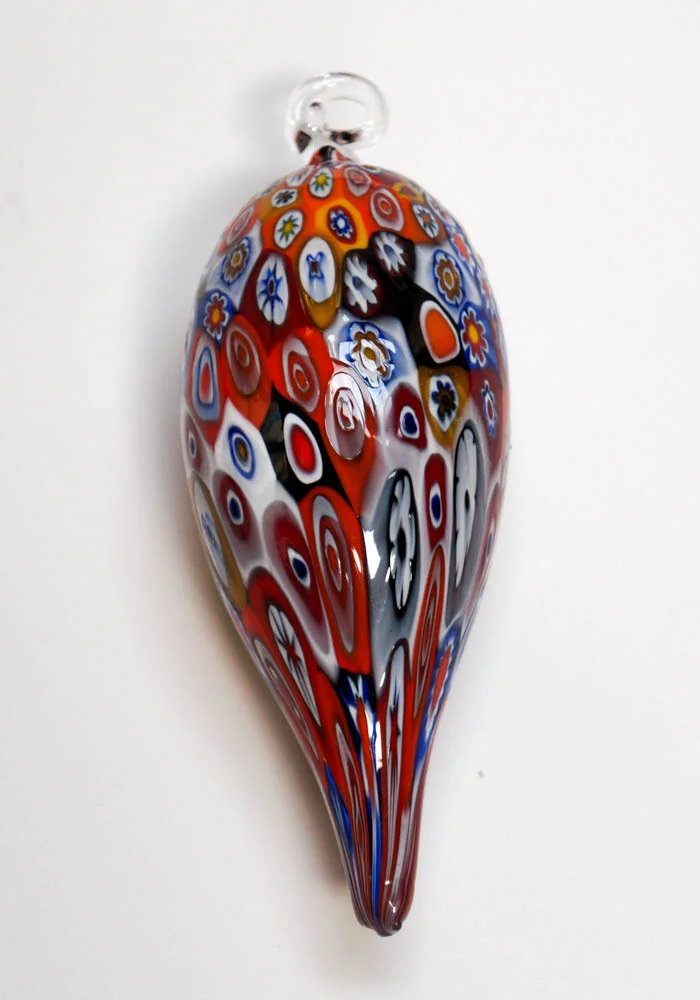 Fantastica Palla di Natale in vetro Murano con decorazioni in murrina millefiori. Eseguita interamente a mano dai nostri Maestri vetrai Murano. Ottima idea per i vostri ornamenti natalizi o come regalo.