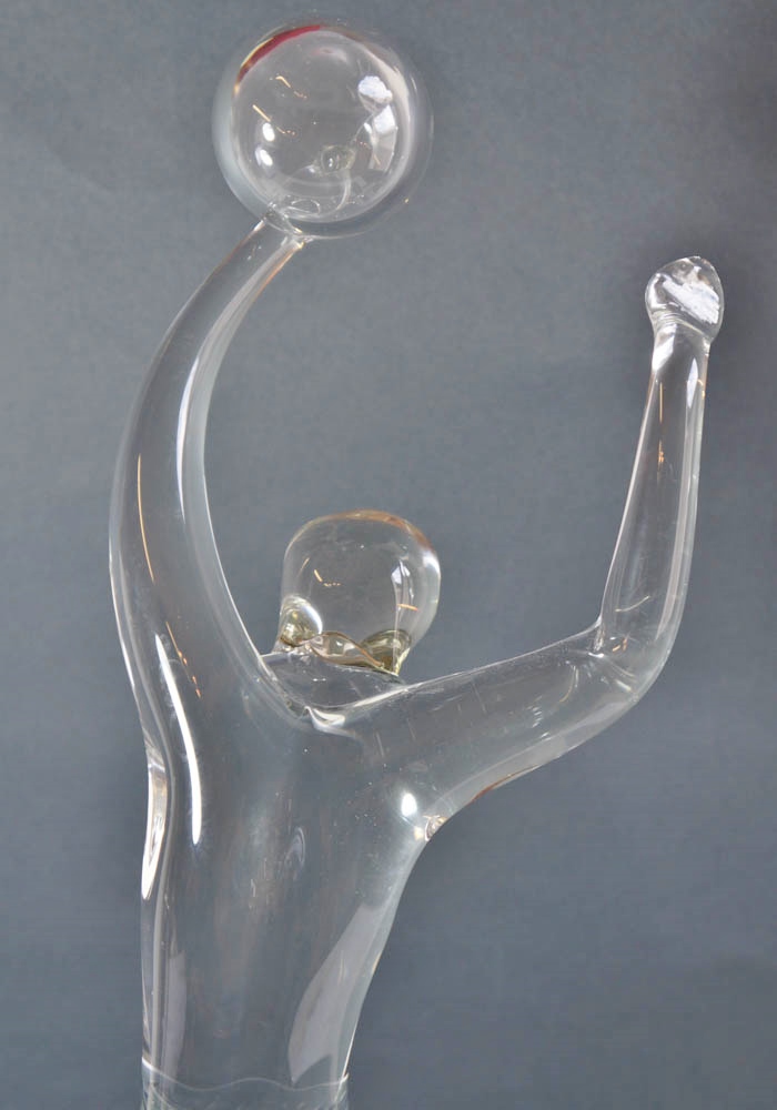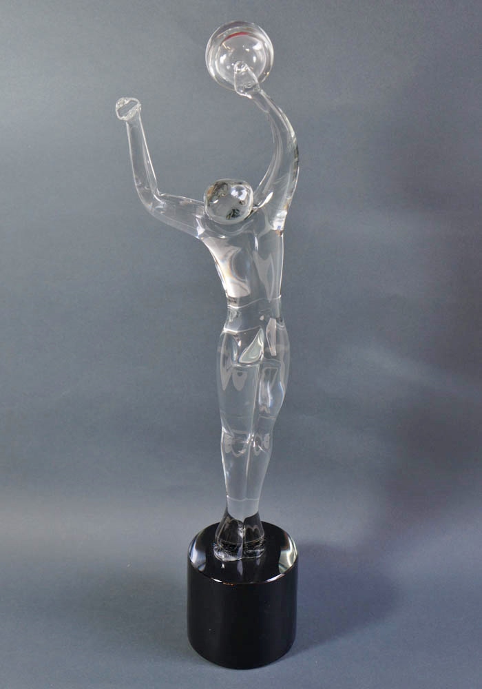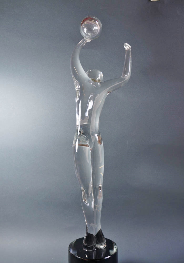 La lavorazione del vetro di Murano rappresentata dal nostro famoso Maestro vetraio Anatrà Renato in una fantastica ed unica scultura figurina di pallavolista in cristallo con base nera. Pezzo di altissima qualità e di rara bellezza. Nella base il grande Maestro vetraio Anatrà, incide a freddo la propria firma, rendendo le opere per Made Murano Glass uniche al mondo!