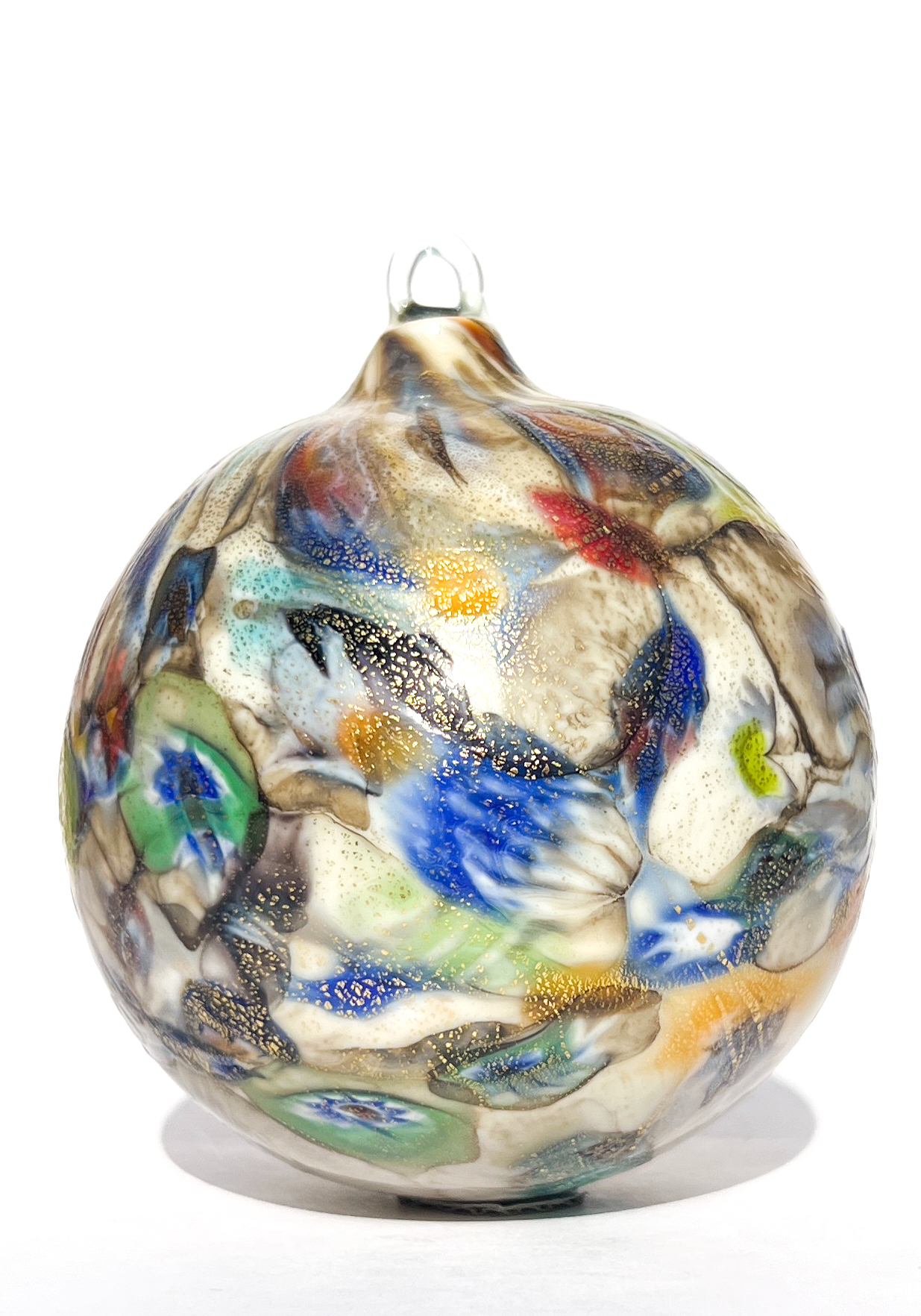 Spakada – Palla di Natale in Vetro di Murano Bianco con Murrina Millefiori