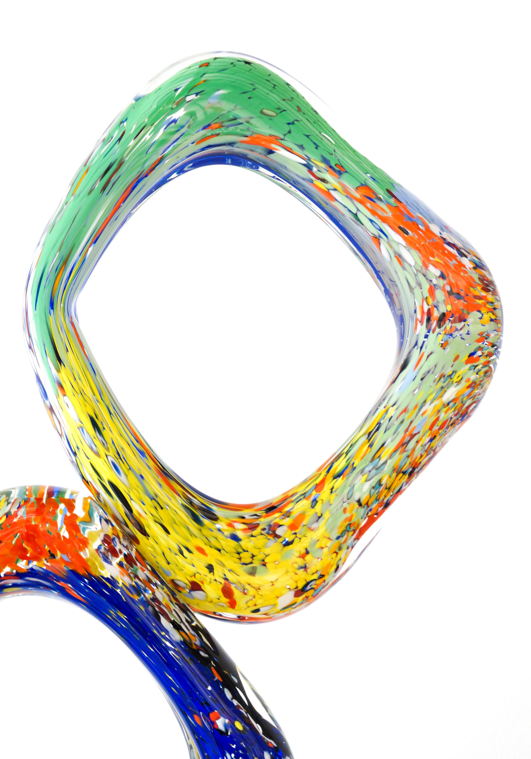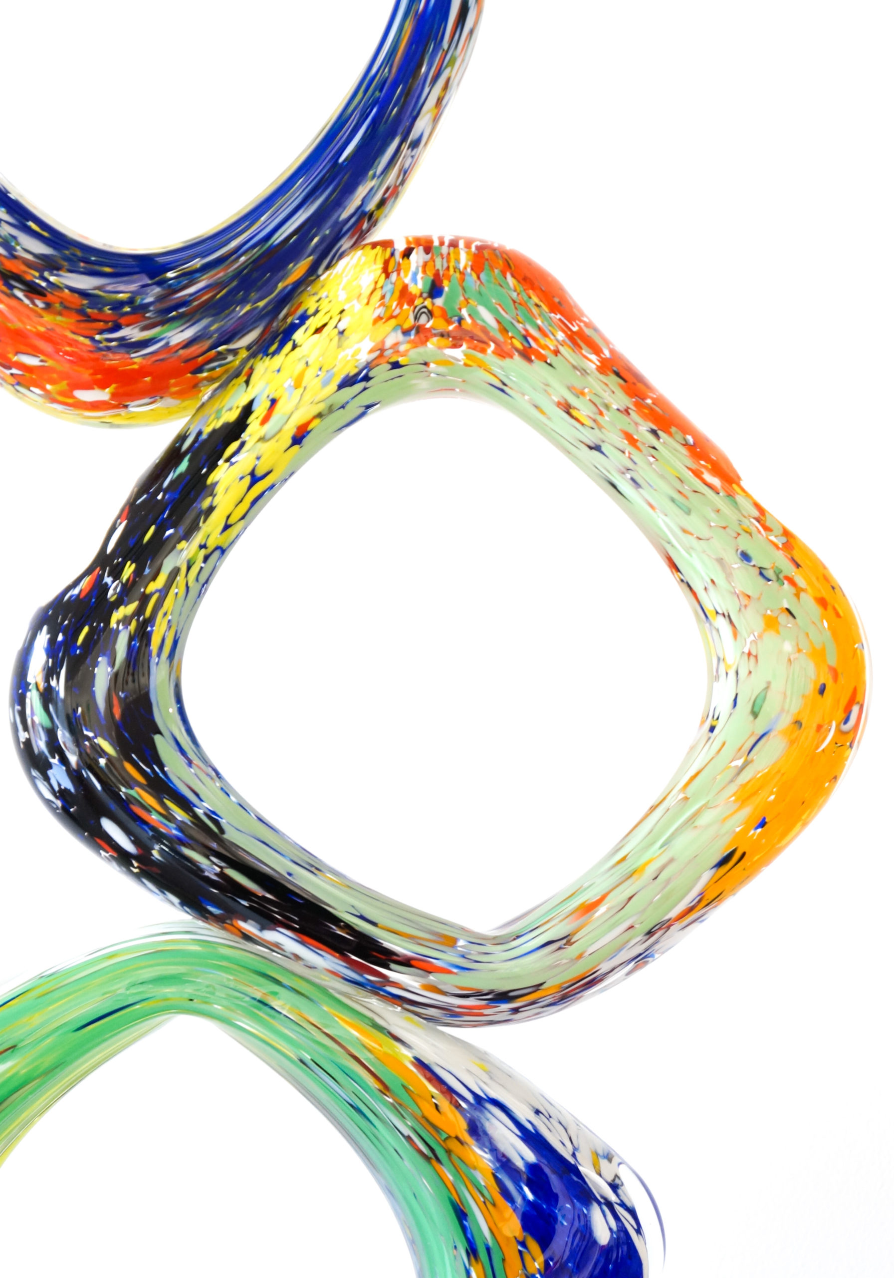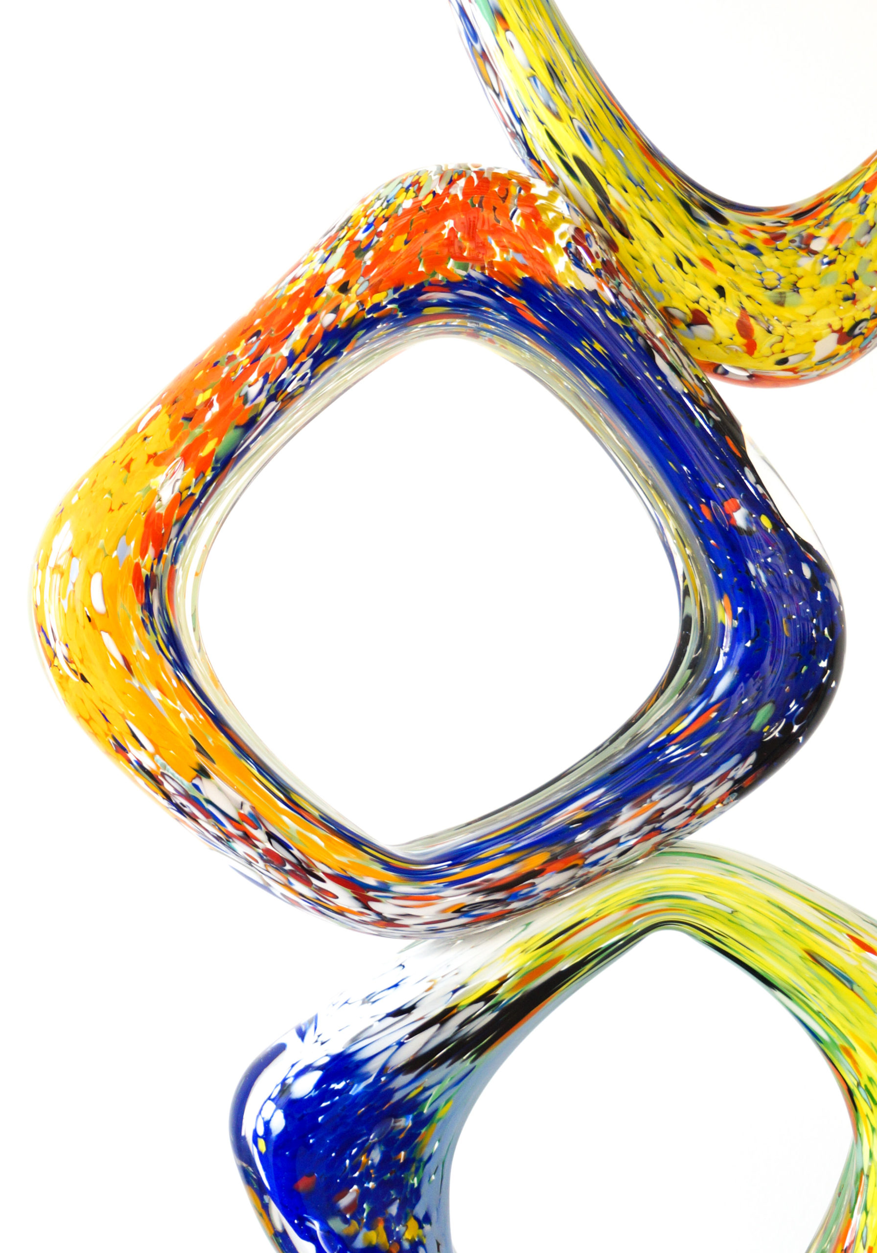 Rhombus – Scultura astratta in Vetro di Murano multicolore a tre piani con base colore nero.