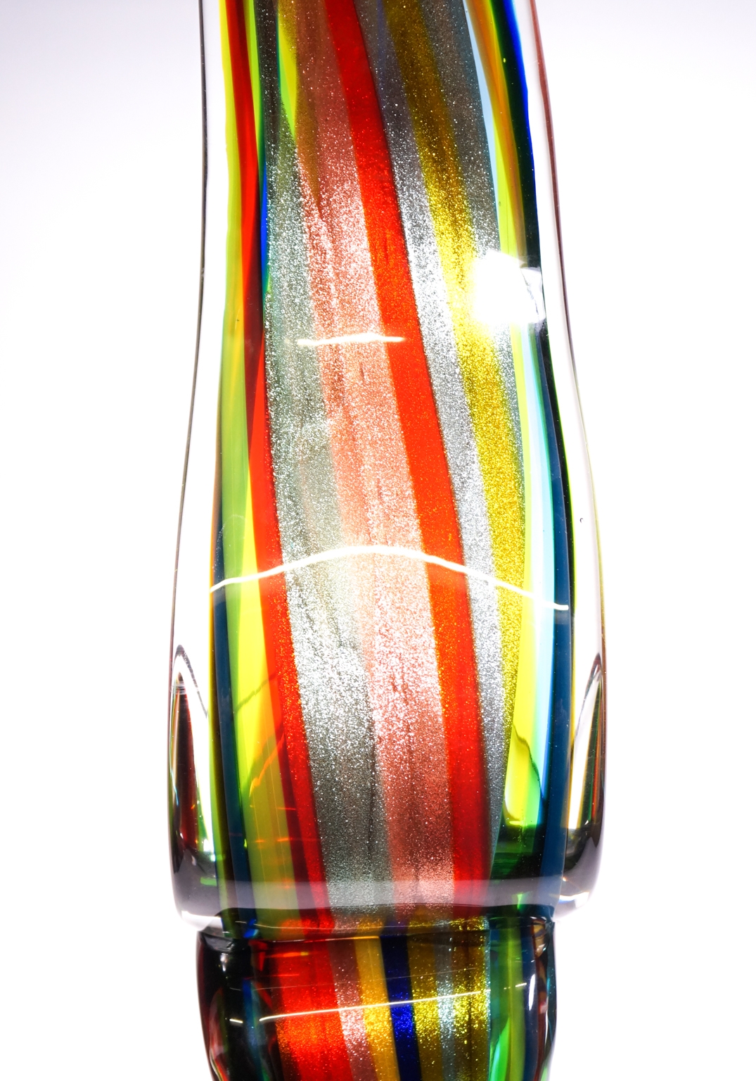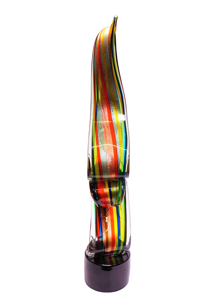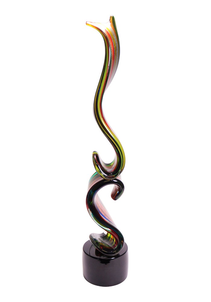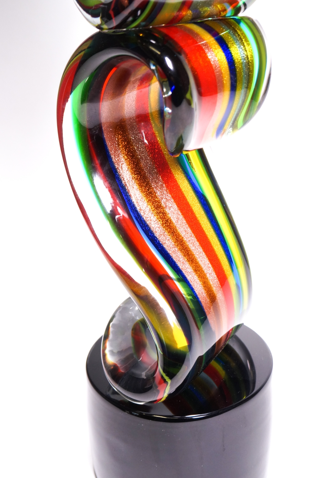 Scultura Due Nastri in Vetro di Murano multicolore con Filigrana e base colore nero.