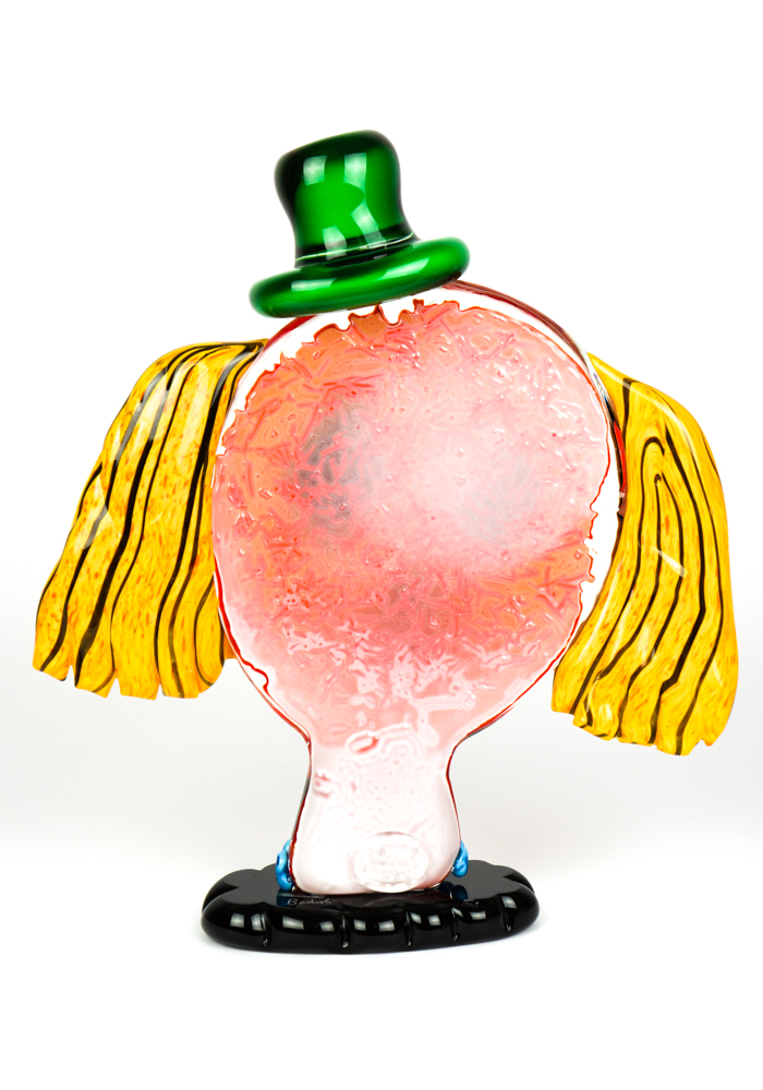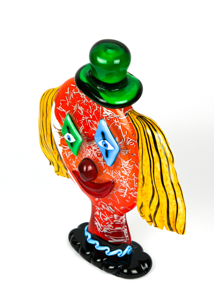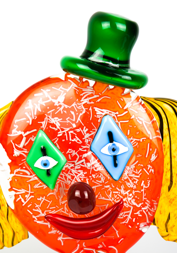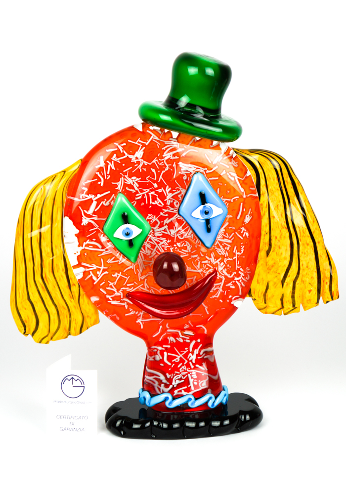 Scultura Testa Tributo Pagliaccio in vetro di Murano eseguita dai nostri Maestri vetrai dell’isola.
