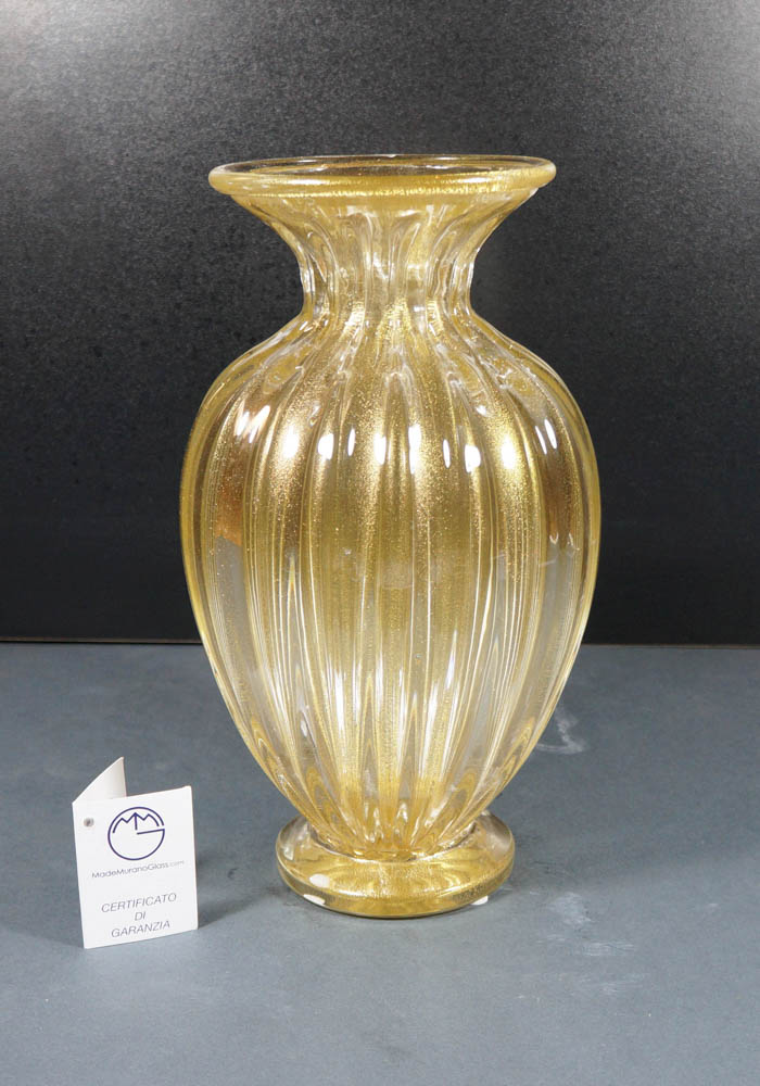 La collezione Arabia contiene magnifiche opere in vetro di Murano cristallo trasparente completamente ricoperte in foglia oro 24 carati.