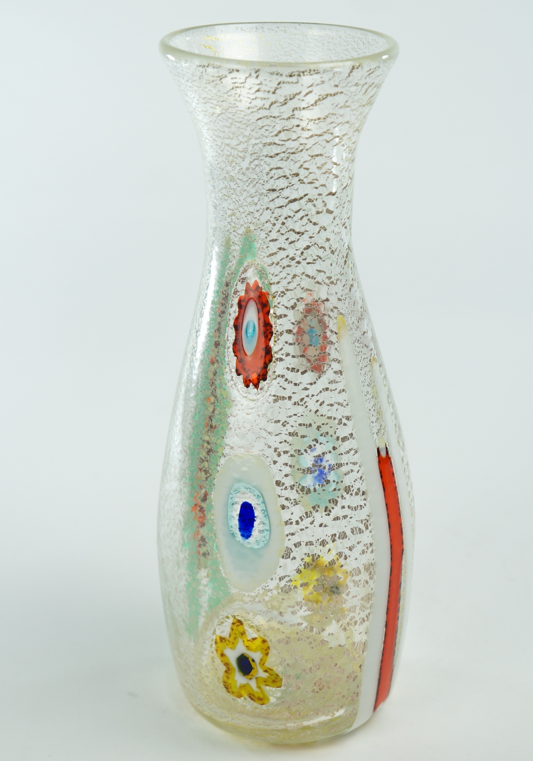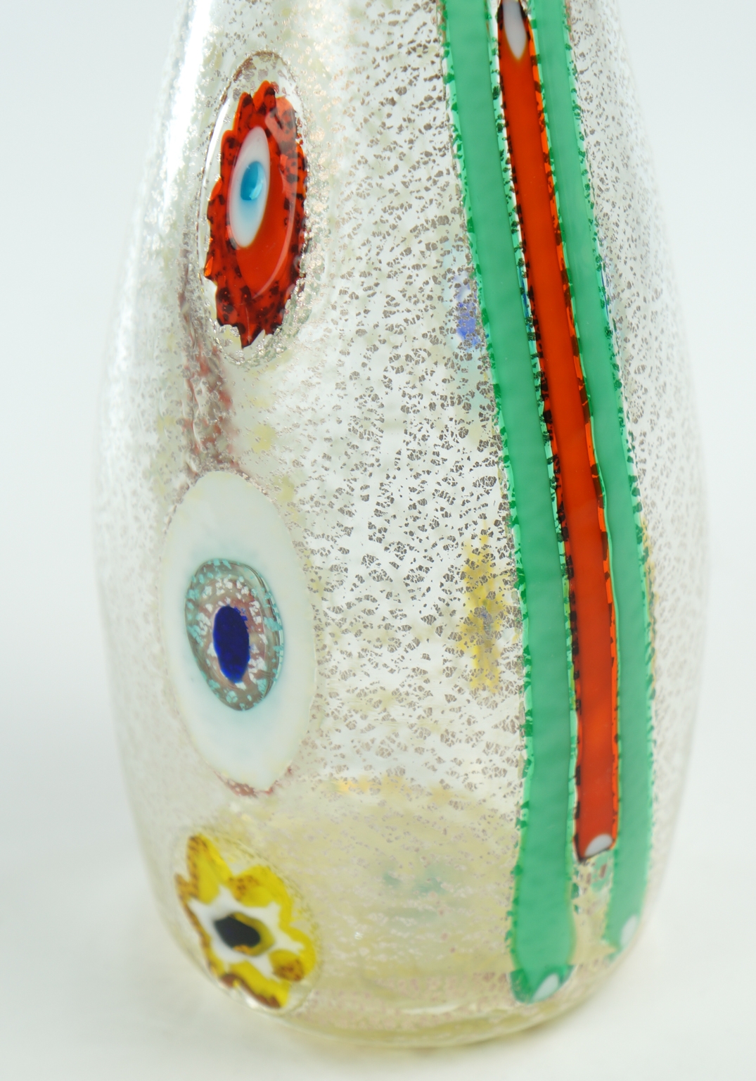 Caraffa realizzata con murrine e bacchette di vetro multicolore.