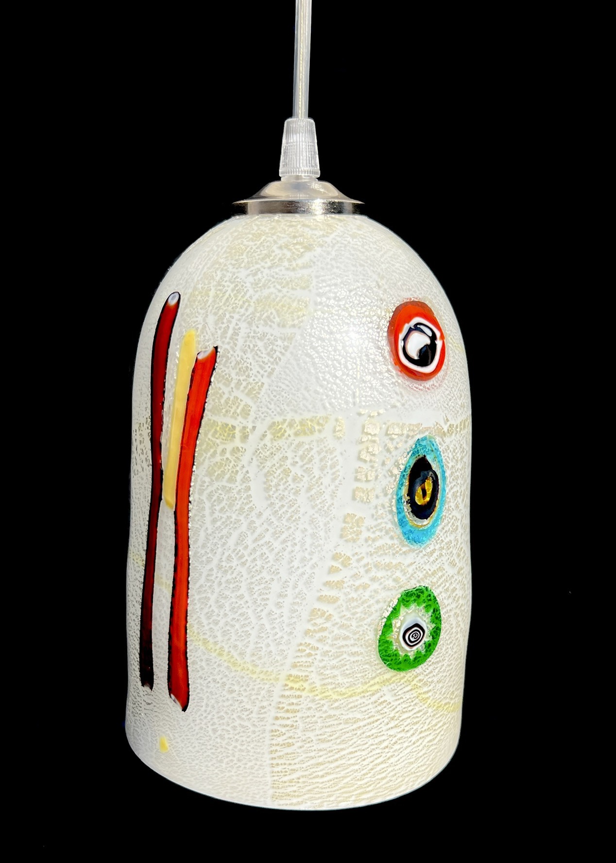 Snow – Lampada In Vetro Di Murano Bianco Con Murrina Millefiori “Teone”