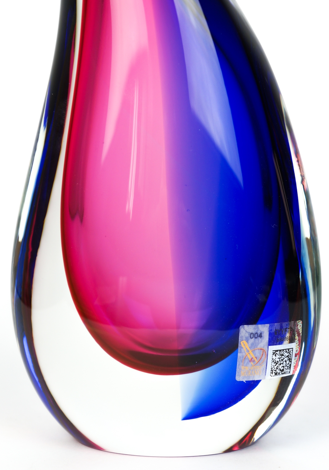 Etichetta adesiva del Vetro Artistico® Murano e firma incisa dal Maestro vetraio sul fondo dell’ opera.