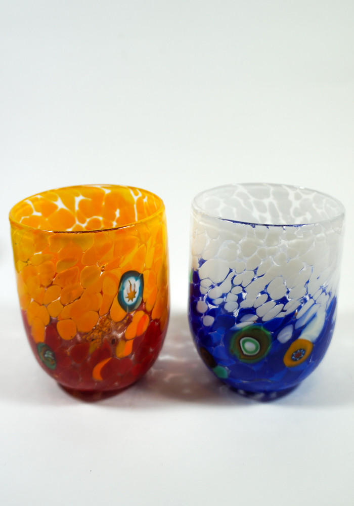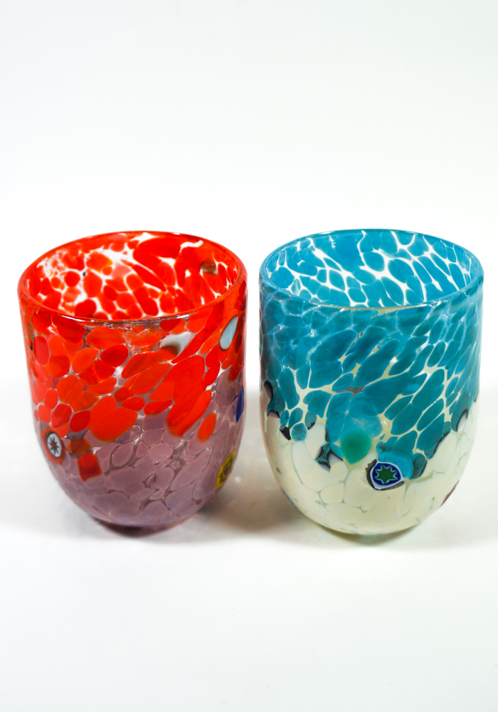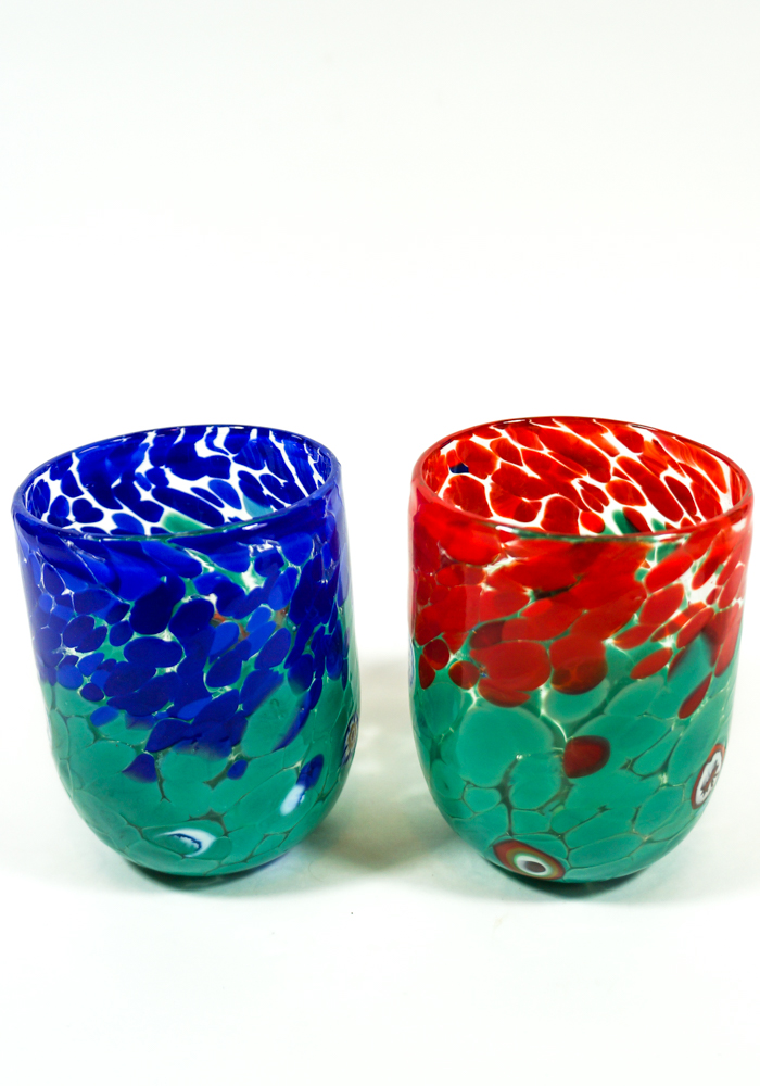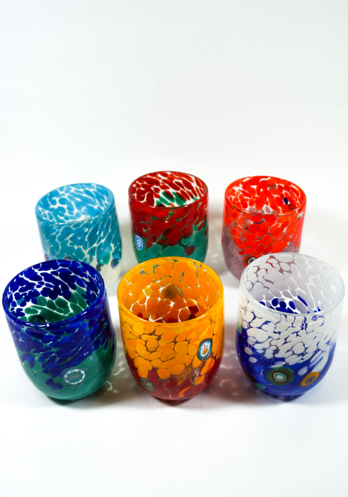 NOTA: La fantasia di colori del set viene sempre mischiata casualmente, secondo l’estro del Maestro vetraio.