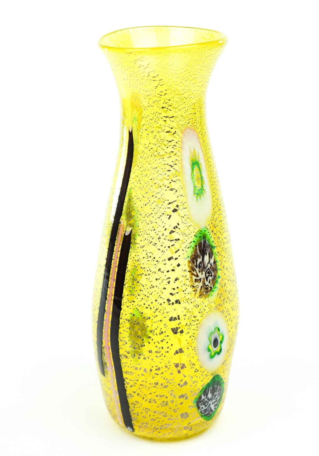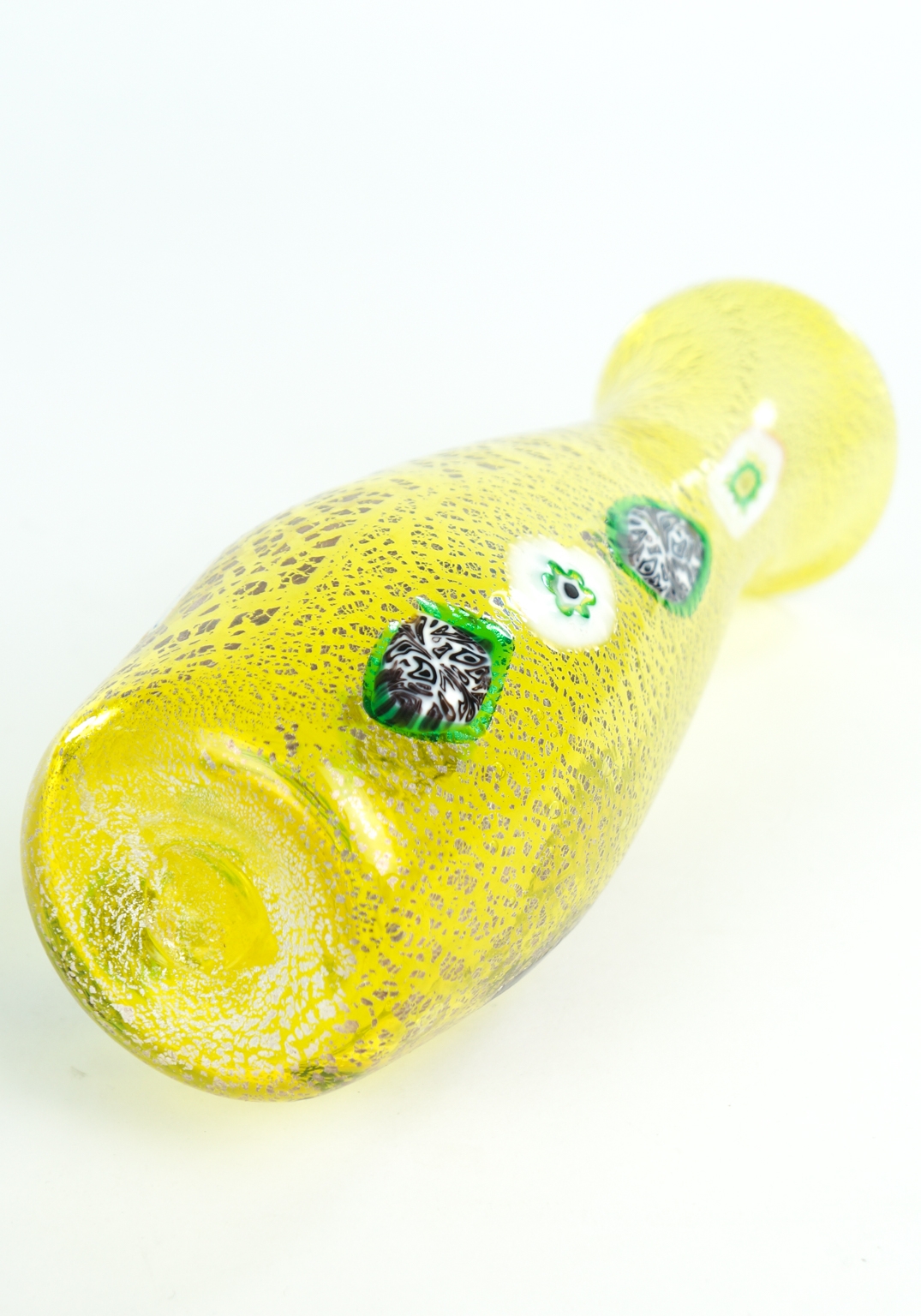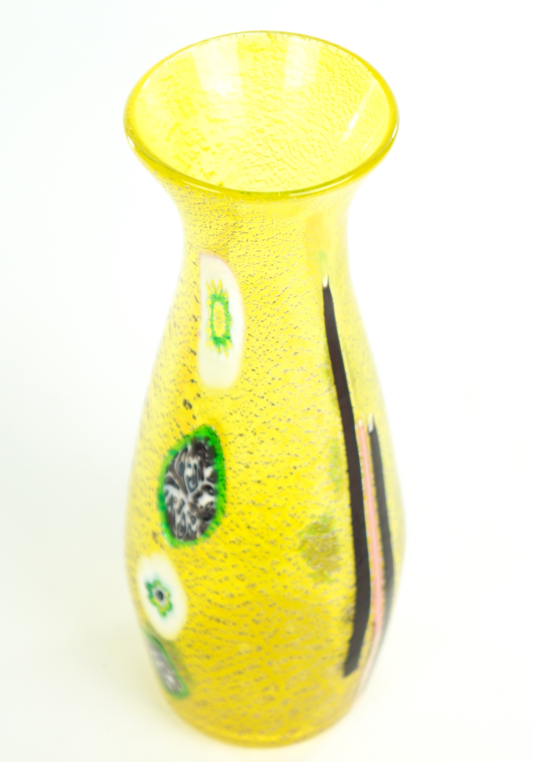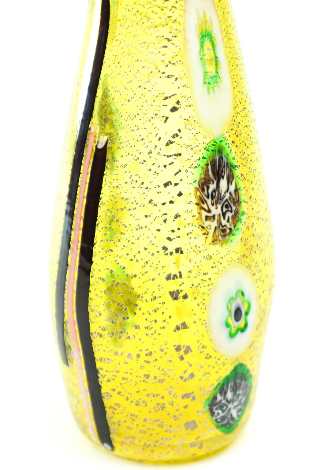 Caraffa realizzata con murrine e bacchette di vetro multicolore.