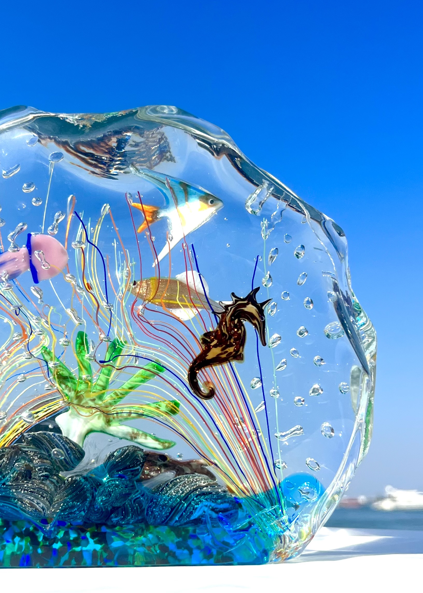 L’opera contiene 1 polipo, 1 razza, 1 medusa, 1 cavalluccio marino, 2 pesci tropicale, 1 anemone di mare, 1 scogliera e decorazioni marine varie.
